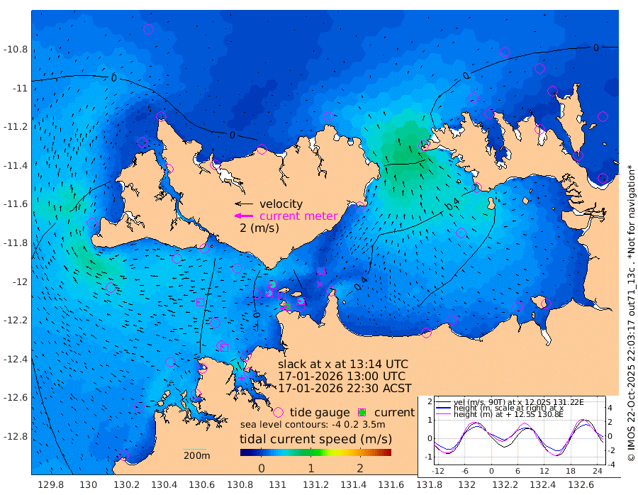 80cm/s -103T +4cm/s rms + 6cm/s 51T. Darwin_C1 52m 40cm/s -87T +4cm/s rms + 7cm/s -161T. Darwin_CW1 22m 36cm/s -113T +4cm/s rms + 8cm/s 61T. Darwin_CW2 34m 21cm/s -112T +3cm/s rms + 9cm/s 98T. Darwin_CW3 22m 14cm/s -98T +5cm/s rms + 7cm/s 88T. Darwin_C3 56m 55cm/s -115T +2cm/s rms + 9cm/s -126T. Darwin_CTbW 22m 38cm/s -86T +1cm/s rms + 1cm/s -47T. DARBGF 30m 36cm/s -59T +4cm/s rms + 3cm/s 80T. NRSDAR 19m 23cm Goodrich Bank -25cm Point Jenny -24cm Native Point -22cm Fish Reef -25cm Tapa Bay -6cm Point Fawcett (Offshore) -19cm Burge Point -36cm Munkunuwa -19cm Beagle A -27cm Parsons Bank -22cm Fenton Patches -19cm Hancox Shoal Area -33cm Nightcliff -13cm Darwin -10cm Charles Point Patches 20cm Glyde Point 57cm Chambers Bay 68cm Point Stuart 32cm Cape Hotham 49cm Christine Reef 77cm West Alligator Head 99cm East Field Island 47cm Two Hills Bay 48cm Camp Point -22cm Medina Inlet South -9cm South Barlow Point 2cm St. Asaph Bay 17cm Cape Van Dieman 17cm Snake Bay 22cm Cache Point 20cm Point Jahleel (Off) 18cm Cape Don 15cm Port Essington 9cm Smith Point - West 12cm NW Peacock Island 15cm North Of Jones Shoal 4cm Peacock Island 8cm Point David 6cm D'urville Point 5cm Copeland Island 11cm One Tree Point