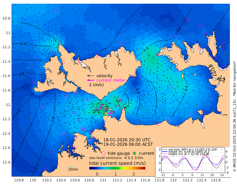 135cm/s 77T +4cm/s rms + 6cm/s 51T. Darwin_C1 52m 92cm/s 89T +4cm/s rms + 7cm/s -161T. Darwin_CW1 22m 52cm/s 74T +4cm/s rms + 8cm/s 61T. Darwin_CW2 34m 75cm/s 43T +3cm/s rms + 9cm/s 98T. Darwin_CW3 22m 70cm/s 89T +5cm/s rms + 7cm/s 88T. Darwin_C3 56m 70cm/s 65T +2cm/s rms + 9cm/s -126T. Darwin_CTbW 22m 26cm/s 88T +1cm/s rms + 1cm/s -47T. DARBGF 30m 28cm/s 111T +4cm/s rms + 3cm/s 80T. NRSDAR 19m -10cm Goodrich Bank 105cm Point Jenny 106cm Native Point 110cm Fish Reef 127cm Tapa Bay 47cm Point Fawcett (Offshore) 127cm Burge Point 116cm Munkunuwa 84cm Beagle A 136cm Parsons Bank 123cm Fenton Patches 134cm Hancox Shoal Area 143cm Nightcliff 147cm Darwin 132cm Charles Point Patches 97cm Glyde Point 55cm Chambers Bay 51cm Point Stuart 79cm Cape Hotham 47cm Christine Reef 48cm West Alligator Head 31cm East Field Island 53cm Two Hills Bay 60cm Camp Point 120cm Medina Inlet South 43cm South Barlow Point 18cm St. Asaph Bay -3cm Cape Van Dieman 7cm Snake Bay -5cm Cache Point 9cm Point Jahleel (Off) 41cm Cape Don 24cm Port Essington 23cm Smith Point - West 25cm NW Peacock Island 9cm North Of Jones Shoal 7cm Peacock Island 61cm Point David 32cm D'urville Point 62cm Copeland Island 50cm One Tree Point