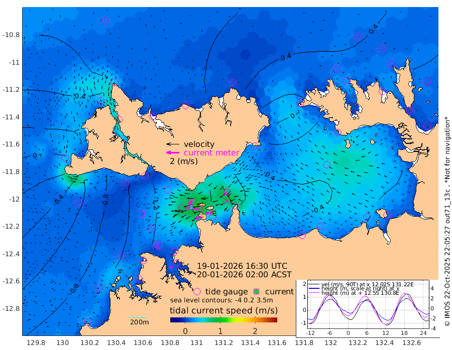 141cm/s -101T +4cm/s rms + 6cm/s 51T. Darwin_C1 52m 116cm/s -91T +4cm/s rms + 7cm/s -161T. Darwin_CW1 22m 65cm/s -107T +4cm/s rms + 8cm/s 61T. Darwin_CW2 34m 74cm/s -136T +3cm/s rms + 9cm/s 98T. Darwin_CW3 22m 98cm/s -91T +5cm/s rms + 7cm/s 88T. Darwin_C3 56m 77cm/s -115T +2cm/s rms + 9cm/s -126T. Darwin_CTbW 22m 13cm/s -109T +1cm/s rms + 1cm/s -47T. DARBGF 30m 12cm/s -99T +4cm/s rms + 3cm/s 80T. NRSDAR 19m 64cm Goodrich Bank -81cm Point Jenny -78cm Native Point -95cm Fish Reef -103cm Tapa Bay -5cm Point Fawcett (Offshore) -117cm Burge Point -106cm Munkunuwa -61cm Beagle A -121cm Parsons Bank -113cm Fenton Patches -122cm Hancox Shoal Area -138cm Nightcliff -135cm Darwin -106cm Charles Point Patches -95cm Glyde Point -86cm Chambers Bay -79cm Point Stuart -83cm Cape Hotham -73cm Christine Reef -90cm West Alligator Head -84cm East Field Island -62cm Two Hills Bay -58cm Camp Point -104cm Medina Inlet South 3cm South Barlow Point 26cm St. Asaph Bay 62cm Cape Van Dieman 57cm Snake Bay 59cm Cache Point 37cm Point Jahleel (Off) -4cm Cape Don 34cm Port Essington 31cm Smith Point - West 36cm NW Peacock Island 43cm North Of Jones Shoal 14cm Peacock Island 20cm Point David 30cm D'urville Point 14cm Copeland Island 20cm One Tree Point
