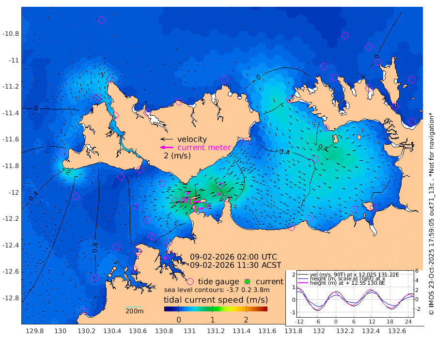 114cm/s 79T +4cm/s rms + 6cm/s 51T. Darwin_C1 52m 79cm/s 93T +4cm/s rms + 7cm/s -161T. Darwin_CW1 22m 70cm/s 72T +4cm/s rms + 8cm/s 61T. Darwin_CW2 34m 57cm/s 49T +3cm/s rms + 9cm/s 98T. Darwin_CW3 22m 116cm/s 89T +5cm/s rms + 7cm/s 88T. Darwin_C3 56m 59cm/s 66T +2cm/s rms + 9cm/s -126T. Darwin_CTbW 22m 9cm/s 61T +1cm/s rms + 1cm/s -47T. DARBGF 30m 7cm/s 5T +4cm/s rms + 3cm/s 80T. NRSDAR 19m -28cm Goodrich Bank 71cm Point Jenny 68cm Native Point 80cm Fish Reef 92cm Tapa Bay 28cm Point Fawcett (Offshore) 83cm Burge Point 86cm Munkunuwa 42cm Beagle A 101cm Parsons Bank 77cm Fenton Patches 106cm Hancox Shoal Area 106cm Nightcliff 113cm Darwin 95cm Charles Point Patches 87cm Glyde Point 90cm Chambers Bay 89cm Point Stuart 83cm Cape Hotham 74cm Christine Reef 100cm West Alligator Head 91cm East Field Island 77cm Two Hills Bay 60cm Camp Point 89cm Medina Inlet South 11cm South Barlow Point -2cm St. Asaph Bay -26cm Cape Van Dieman -21cm Snake Bay -21cm Cache Point -4cm Point Jahleel (Off) 29cm Cape Don 2cm Port Essington 5cm Smith Point - West 1cm NW Peacock Island -5cm North Of Jones Shoal 0cm Peacock Island 20cm Point David 6cm D'urville Point 23cm Copeland Island 19cm One Tree Point
