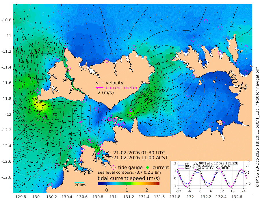 54cm/s 81T +4cm/s rms + 6cm/s 51T. Darwin_C1 52m 38cm/s 90T +4cm/s rms + 7cm/s -161T. Darwin_CW1 22m 24cm/s 66T +4cm/s rms + 8cm/s 61T. Darwin_CW2 34m 51cm/s 44T +3cm/s rms + 9cm/s 98T. Darwin_CW3 22m 56cm/s 91T +5cm/s rms + 7cm/s 88T. Darwin_C3 56m 25cm/s 66T +2cm/s rms + 9cm/s -126T. Darwin_CTbW 22m 61cm/s -82T +1cm/s rms + 1cm/s -47T. DARBGF 30m 80cm/s -53T +4cm/s rms + 3cm/s 80T. NRSDAR 19m -92cm Goodrich Bank 0cm Point Jenny -4cm Native Point 5cm Fish Reef 24cm Tapa Bay -72cm Point Fawcett (Offshore) 32cm Burge Point -6cm Munkunuwa -29cm Beagle A 47cm Parsons Bank 30cm Fenton Patches 76cm Hancox Shoal Area 62cm Nightcliff 72cm Darwin 39cm Charles Point Patches 109cm Glyde Point 187cm Chambers Bay 201cm Point Stuart 126cm Cape Hotham 168cm Christine Reef 228cm West Alligator Head 261cm East Field Island 137cm Two Hills Bay 130cm Camp Point 13cm Medina Inlet South -83cm South Barlow Point -92cm St. Asaph Bay -97cm Cape Van Dieman -94cm Snake Bay -83cm Cache Point -53cm Point Jahleel (Off) 9cm Cape Don -43cm Port Essington -43cm Smith Point - West -37cm NW Peacock Island -56cm North Of Jones Shoal -17cm Peacock Island 3cm Point David -36cm D'urville Point 12cm Copeland Island -3cm One Tree Point