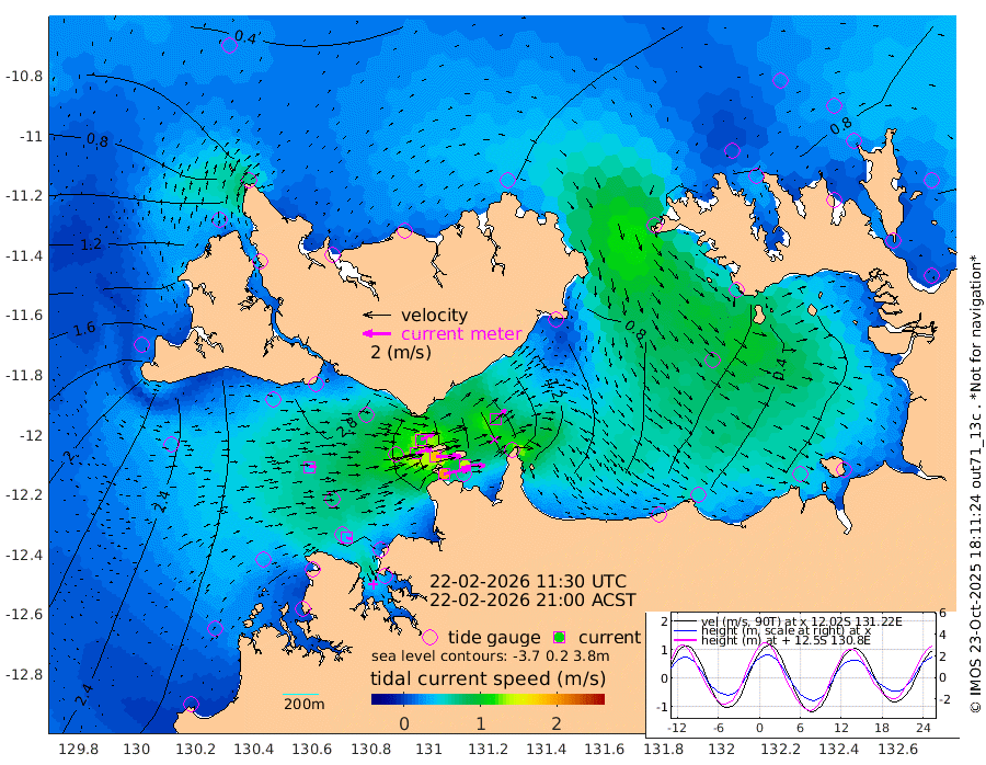 195cm/s 78T +4cm/s rms + 6cm/s 51T. Darwin_C1 52m 141cm/s 90T +4cm/s rms + 7cm/s -161T. Darwin_CW1 22m 119cm/s 74T +4cm/s rms + 8cm/s 61T. Darwin_CW2 34m 100cm/s 46T +3cm/s rms + 9cm/s 98T. Darwin_CW3 22m 181cm/s 89T +5cm/s rms + 7cm/s 88T. Darwin_C3 56m 102cm/s 64T +2cm/s rms + 9cm/s -126T. Darwin_CTbW 22m 47cm/s 83T +1cm/s rms + 1cm/s -47T. DARBGF 30m 43cm/s 107T +4cm/s rms + 3cm/s 80T. NRSDAR 19m 27cm Goodrich Bank 216cm Point Jenny 218cm Native Point 233cm Fish Reef 246cm Tapa Bay 123cm Point Fawcett (Offshore) 267cm Burge Point 247cm Munkunuwa 194cm Beagle A 269cm Parsons Bank 254cm Fenton Patches 250cm Hancox Shoal Area 263cm Nightcliff 285cm Darwin 258cm Charles Point Patches 185cm Glyde Point 104cm Chambers Bay 94cm Point Stuart 147cm Cape Hotham 96cm Christine Reef 94cm West Alligator Head 60cm East Field Island 106cm Two Hills Bay 103cm Camp Point 247cm Medina Inlet South 120cm South Barlow Point 77cm St. Asaph Bay 34cm Cape Van Dieman 49cm Snake Bay 32cm Cache Point 50cm Point Jahleel (Off) 89cm Cape Don 60cm Port Essington 62cm Smith Point - West 58cm NW Peacock Island 35cm North Of Jones Shoal 15cm Peacock Island 79cm Point David 67cm D'urville Point 78cm Copeland Island 73cm One Tree Point