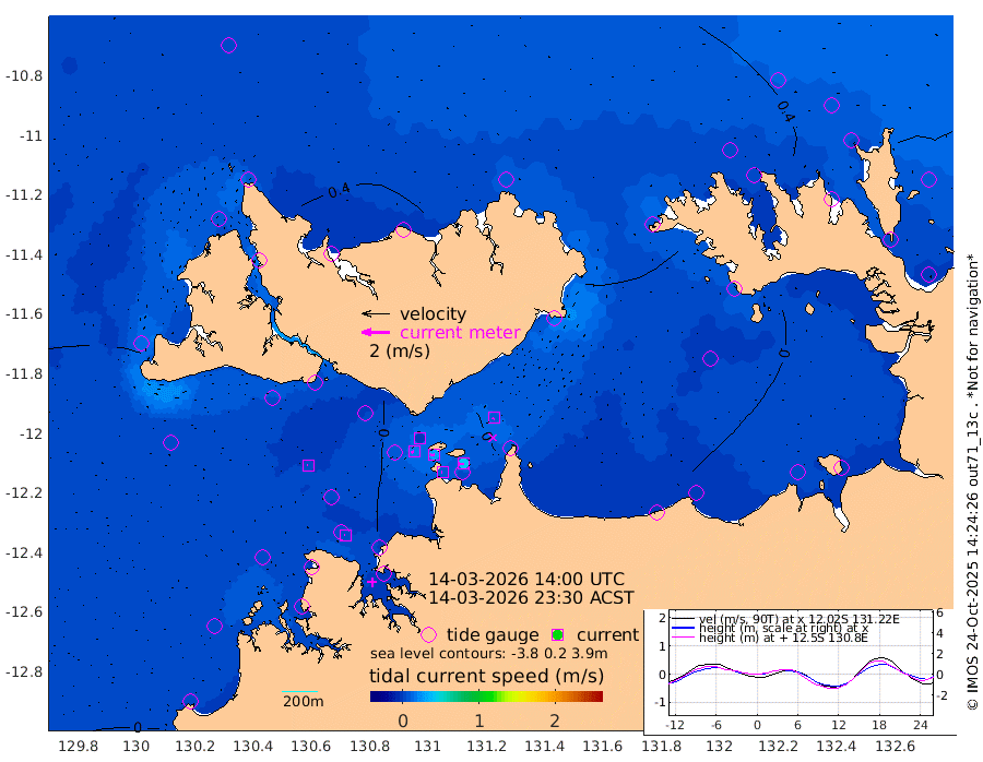 9cm/s -96T +4cm/s rms + 6cm/s 51T. Darwin_C1 52m 40cm/s -90T +4cm/s rms + 7cm/s -161T. Darwin_CW1 22m 19cm/s -109T +4cm/s rms + 8cm/s 61T. Darwin_CW2 34m 11cm/s -143T +3cm/s rms + 9cm/s 98T. Darwin_CW3 22m 29cm/s -93T +5cm/s rms + 7cm/s 88T. Darwin_C3 56m 1cm/s 14T +2cm/s rms + 9cm/s -126T. Darwin_CTbW 22m 5cm/s -105T +1cm/s rms + 1cm/s -47T. DARBGF 30m 6cm/s -65T +4cm/s rms + 3cm/s 80T. NRSDAR 19m 29cm Goodrich Bank -21cm Point Jenny -19cm Native Point -33cm Fish Reef -22cm Tapa Bay -1cm Point Fawcett (Offshore) -33cm Burge Point -28cm Munkunuwa -23cm Beagle A -21cm Parsons Bank -35cm Fenton Patches -20cm Hancox Shoal Area -33cm Nightcliff -30cm Darwin -24cm Charles Point Patches -20cm Glyde Point -20cm Chambers Bay -17cm Point Stuart -15cm Cape Hotham -13cm Christine Reef -22cm West Alligator Head -25cm East Field Island -7cm Two Hills Bay -9cm Camp Point -28cm Medina Inlet South 9cm South Barlow Point 11cm St. Asaph Bay 30cm Cape Van Dieman 33cm Snake Bay 28cm Cache Point 24cm Point Jahleel (Off) 14cm Cape Don 29cm Port Essington 30cm Smith Point - West 35cm NW Peacock Island 29cm North Of Jones Shoal 11cm Peacock Island 45cm Point David 35cm D'urville Point 43cm Copeland Island 38cm One Tree Point