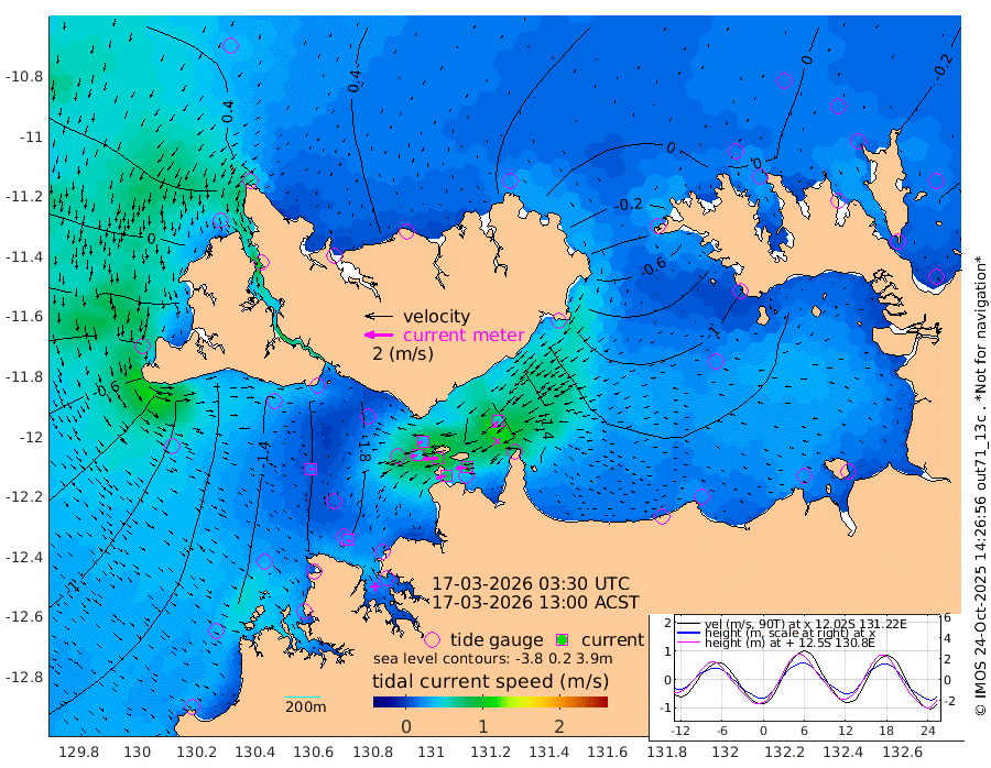 73cm/s -101T +4cm/s rms + 6cm/s 51T. Darwin_C1 52m 78cm/s -93T +4cm/s rms + 7cm/s -161T. Darwin_CW1 22m 50cm/s -105T +4cm/s rms + 8cm/s 61T. Darwin_CW2 34m 62cm/s -139T +3cm/s rms + 9cm/s 98T. Darwin_CW3 22m 96cm/s -91T +5cm/s rms + 7cm/s 88T. Darwin_C3 56m 33cm/s -116T +2cm/s rms + 9cm/s -126T. Darwin_CTbW 22m 18cm/s 114T +1cm/s rms + 1cm/s -47T. DARBGF 30m 24cm/s 139T +4cm/s rms + 3cm/s 80T. NRSDAR 19m 36cm Goodrich Bank -95cm Point Jenny -94cm Native Point -107cm Fish Reef -125cm Tapa Bay -19cm Point Fawcett (Offshore) -135cm Burge Point -101cm Munkunuwa -67cm Beagle A -136cm Parsons Bank -127cm Fenton Patches -149cm Hancox Shoal Area -147cm Nightcliff -171cm Darwin -149cm Charles Point Patches -145cm Glyde Point -156cm Chambers Bay -152cm Point Stuart -132cm Cape Hotham -130cm Christine Reef -165cm West Alligator Head -174cm East Field Island -117cm Two Hills Bay -128cm Camp Point -120cm Medina Inlet South -5cm South Barlow Point 15cm St. Asaph Bay 37cm Cape Van Dieman 31cm Snake Bay 31cm Cache Point 10cm Point Jahleel (Off) -42cm Cape Don -3cm Port Essington 4cm Smith Point - West 2cm NW Peacock Island 16cm North Of Jones Shoal 4cm Peacock Island -31cm Point David -1cm D'urville Point -35cm Copeland Island -27cm One Tree Point