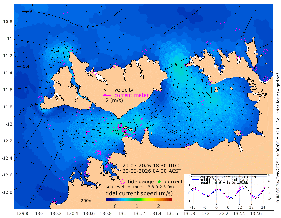 84cm/s 78T +4cm/s rms + 6cm/s 51T. Darwin_C1 52m 55cm/s 90T +4cm/s rms + 7cm/s -161T. Darwin_CW1 22m 46cm/s 73T +4cm/s rms + 8cm/s 61T. Darwin_CW2 34m 47cm/s 41T +3cm/s rms + 9cm/s 98T. Darwin_CW3 22m 58cm/s 89T +5cm/s rms + 7cm/s 88T. Darwin_C3 56m 45cm/s 65T +2cm/s rms + 9cm/s -126T. Darwin_CTbW 22m 27cm/s 87T +1cm/s rms + 1cm/s -47T. DARBGF 30m 26cm/s 117T +4cm/s rms + 3cm/s 80T. NRSDAR 19m -10cm Goodrich Bank 114cm Point Jenny 110cm Native Point 124cm Fish Reef 124cm Tapa Bay 57cm Point Fawcett (Offshore) 135cm Burge Point 112cm Munkunuwa 99cm Beagle A 132cm Parsons Bank 131cm Fenton Patches 129cm Hancox Shoal Area 133cm Nightcliff 139cm Darwin 127cm Charles Point Patches 103cm Glyde Point 82cm Chambers Bay 78cm Point Stuart 92cm Cape Hotham 69cm Christine Reef 80cm West Alligator Head 68cm East Field Island 72cm Two Hills Bay 68cm Camp Point 117cm Medina Inlet South 39cm South Barlow Point 21cm St. Asaph Bay -4cm Cape Van Dieman -4cm Snake Bay 3cm Cache Point 13cm Point Jahleel (Off) 48cm Cape Don 27cm Port Essington 27cm Smith Point - West 26cm NW Peacock Island 10cm North Of Jones Shoal 7cm Peacock Island 50cm Point David 33cm D'urville Point 54cm Copeland Island 45cm One Tree Point