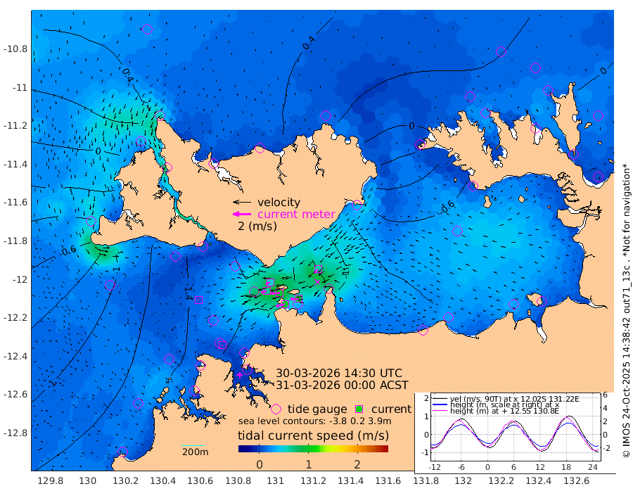 100cm/s -101T +4cm/s rms + 6cm/s 51T. Darwin_C1 52m 92cm/s -91T +4cm/s rms + 7cm/s -161T. Darwin_CW1 22m 63cm/s -107T +4cm/s rms + 8cm/s 61T. Darwin_CW2 34m 60cm/s -137T +3cm/s rms + 9cm/s 98T. Darwin_CW3 22m 97cm/s -91T +5cm/s rms + 7cm/s 88T. Darwin_C3 56m 51cm/s -116T +2cm/s rms + 9cm/s -126T. Darwin_CTbW 22m 8cm/s -136T +1cm/s rms + 1cm/s -47T. DARBGF 30m 6cm/s -134T +4cm/s rms + 3cm/s 80T. NRSDAR 19m 38cm Goodrich Bank -127cm Point Jenny -126cm Native Point -144cm Fish Reef -147cm Tapa Bay -35cm Point Fawcett (Offshore) -175cm Burge Point -139cm Munkunuwa -115cm Beagle A -162cm Parsons Bank -173cm Fenton Patches -160cm Hancox Shoal Area -170cm Nightcliff -183cm Darwin -155cm Charles Point Patches -143cm Glyde Point -124cm Chambers Bay -126cm Point Stuart -125cm Cape Hotham -114cm Christine Reef -138cm West Alligator Head -139cm East Field Island -99cm Two Hills Bay -102cm Camp Point -143cm Medina Inlet South -23cm South Barlow Point 2cm St. Asaph Bay 36cm Cape Van Dieman 35cm Snake Bay 31cm Cache Point 12cm Point Jahleel (Off) -32cm Cape Don 10cm Port Essington 9cm Smith Point - West 13cm NW Peacock Island 32cm North Of Jones Shoal 10cm Peacock Island -1cm Point David 9cm D'urville Point -5cm Copeland Island 3cm One Tree Point
