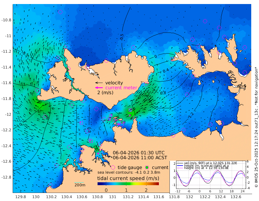 85cm/s 80T +4cm/s rms + 6cm/s 51T. Darwin_C1 52m 80cm/s 91T +4cm/s rms + 7cm/s -161T. Darwin_CW1 22m 33cm/s 70T +4cm/s rms + 8cm/s 61T. Darwin_CW2 34m 57cm/s 47T +3cm/s rms + 9cm/s 98T. Darwin_CW3 22m 76cm/s 91T +5cm/s rms + 7cm/s 88T. Darwin_C3 56m 41cm/s 66T +2cm/s rms + 9cm/s -126T. Darwin_CTbW 22m 40cm/s -79T +1cm/s rms + 1cm/s -47T. DARBGF 30m 59cm/s -52T +4cm/s rms + 3cm/s 80T. NRSDAR 19m -45cm Goodrich Bank 28cm Point Jenny 24cm Native Point 42cm Fish Reef 45cm Tapa Bay -13cm Point Fawcett (Offshore) 52cm Burge Point 25cm Munkunuwa 7cm Beagle A 56cm Parsons Bank 46cm Fenton Patches 73cm Hancox Shoal Area 66cm Nightcliff 81cm Darwin 57cm Charles Point Patches 107cm Glyde Point 163cm Chambers Bay 185cm Point Stuart 122cm Cape Hotham 145cm Christine Reef 210cm West Alligator Head 234cm East Field Island 135cm Two Hills Bay 116cm Camp Point 43cm Medina Inlet South -36cm South Barlow Point -39cm St. Asaph Bay -50cm Cape Van Dieman -47cm Snake Bay -35cm Cache Point -15cm Point Jahleel (Off) 29cm Cape Don -15cm Port Essington -17cm Smith Point - West -16cm NW Peacock Island -21cm North Of Jones Shoal -7cm Peacock Island 3cm Point David -17cm D'urville Point 6cm Copeland Island 5cm One Tree Point