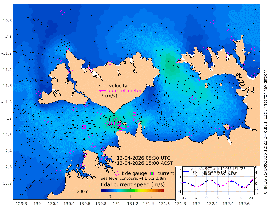 117cm/s 77T +4cm/s rms + 6cm/s 51T. Darwin_C1 52m 73cm/s 90T +4cm/s rms + 7cm/s -161T. Darwin_CW1 22m 58cm/s 73T +4cm/s rms + 8cm/s 61T. Darwin_CW2 34m 55cm/s 50T +3cm/s rms + 9cm/s 98T. Darwin_CW3 22m 69cm/s 89T +5cm/s rms + 7cm/s 88T. Darwin_C3 56m 72cm/s 65T +2cm/s rms + 9cm/s -126T. Darwin_CTbW 22m 36cm/s 87T +1cm/s rms + 1cm/s -47T. DARBGF 30m 34cm/s 115T +4cm/s rms + 3cm/s 80T. NRSDAR 19m 25cm Goodrich Bank 132cm Point Jenny 131cm Native Point 129cm Fish Reef 134cm Tapa Bay 83cm Point Fawcett (Offshore) 142cm Burge Point 123cm Munkunuwa 125cm Beagle A 124cm Parsons Bank 143cm Fenton Patches 121cm Hancox Shoal Area 147cm Nightcliff 134cm Darwin 128cm Charles Point Patches 90cm Glyde Point 60cm Chambers Bay 42cm Point Stuart 66cm Cape Hotham 62cm Christine Reef 43cm West Alligator Head 30cm East Field Island 48cm Two Hills Bay 55cm Camp Point 129cm Medina Inlet South 71cm South Barlow Point 58cm St. Asaph Bay 28cm Cape Van Dieman 29cm Snake Bay 29cm Cache Point 32cm Point Jahleel (Off) 48cm Cape Don 26cm Port Essington 30cm Smith Point - West 23cm NW Peacock Island 22cm North Of Jones Shoal 8cm Peacock Island 14cm Point David 26cm D'urville Point 14cm Copeland Island 19cm One Tree Point