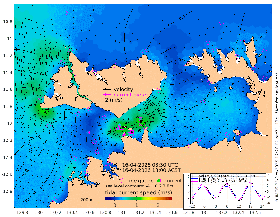 97cm/s -101T +4cm/s rms + 6cm/s 51T. Darwin_C1 52m 87cm/s -92T +4cm/s rms + 7cm/s -161T. Darwin_CW1 22m 58cm/s -106T +4cm/s rms + 8cm/s 61T. Darwin_CW2 34m 67cm/s -137T +3cm/s rms + 9cm/s 98T. Darwin_CW3 22m 107cm/s -90T +5cm/s rms + 7cm/s 88T. Darwin_C3 56m 46cm/s -116T +2cm/s rms + 9cm/s -126T. Darwin_CTbW 22m 17cm/s 116T +1cm/s rms + 1cm/s -47T. DARBGF 30m 24cm/s 143T +4cm/s rms + 3cm/s 80T. NRSDAR 19m 65cm Goodrich Bank -91cm Point Jenny -88cm Native Point -98cm Fish Reef -120cm Tapa Bay 2cm Point Fawcett (Offshore) -133cm Burge Point -103cm Munkunuwa -54cm Beagle A -137cm Parsons Bank -121cm Fenton Patches -149cm Hancox Shoal Area -149cm Nightcliff -165cm Darwin -137cm Charles Point Patches -136cm Glyde Point -150cm Chambers Bay -144cm Point Stuart -123cm Cape Hotham -131cm Christine Reef -160cm West Alligator Head -166cm East Field Island -107cm Two Hills Bay -116cm Camp Point -113cm Medina Inlet South 14cm South Barlow Point 37cm St. Asaph Bay 65cm Cape Van Dieman 61cm Snake Bay 60cm Cache Point 35cm Point Jahleel (Off) -25cm Cape Don 22cm Port Essington 26cm Smith Point - West 26cm NW Peacock Island 41cm North Of Jones Shoal 12cm Peacock Island -7cm Point David 22cm D'urville Point -13cm Copeland Island -3cm One Tree Point