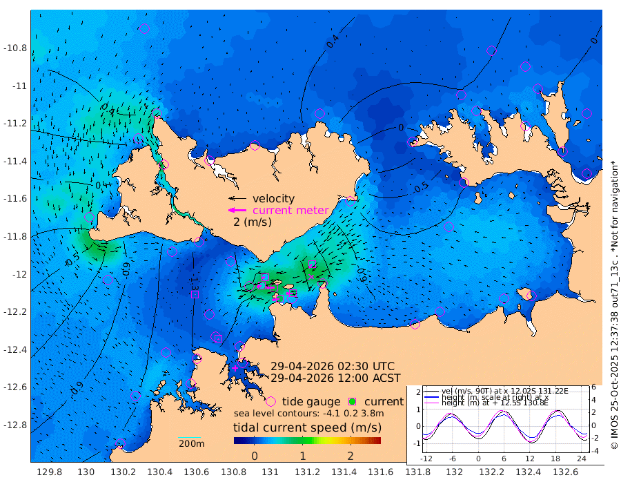 83cm/s -101T +4cm/s rms + 6cm/s 51T. Darwin_C1 52m 76cm/s -91T +4cm/s rms + 7cm/s -161T. Darwin_CW1 22m 53cm/s -106T +4cm/s rms + 8cm/s 61T. Darwin_CW2 34m 54cm/s -136T +3cm/s rms + 9cm/s 98T. Darwin_CW3 22m 93cm/s -91T +5cm/s rms + 7cm/s 88T. Darwin_C3 56m 37cm/s -116T +2cm/s rms + 9cm/s -126T. Darwin_CTbW 22m 8cm/s 139T +1cm/s rms + 1cm/s -47T. DARBGF 30m 12cm/s 153T +4cm/s rms + 3cm/s 80T. NRSDAR 19m 56cm Goodrich Bank -87cm Point Jenny -85cm Native Point -100cm Fish Reef -112cm Tapa Bay -10cm Point Fawcett (Offshore) -126cm Burge Point -106cm Munkunuwa -55cm Beagle A -128cm Parsons Bank -110cm Fenton Patches -129cm Hancox Shoal Area -126cm Nightcliff -146cm Darwin -120cm Charles Point Patches -118cm Glyde Point -117cm Chambers Bay -122cm Point Stuart -109cm Cape Hotham -97cm Christine Reef -135cm West Alligator Head -133cm East Field Island -91cm Two Hills Bay -91cm Camp Point -107cm Medina Inlet South 8cm South Barlow Point 27cm St. Asaph Bay 53cm Cape Van Dieman 51cm Snake Bay 49cm Cache Point 29cm Point Jahleel (Off) -20cm Cape Don 18cm Port Essington 24cm Smith Point - West 25cm NW Peacock Island 39cm North Of Jones Shoal 12cm Peacock Island -8cm Point David 20cm D'urville Point -12cm Copeland Island -2cm One Tree Point