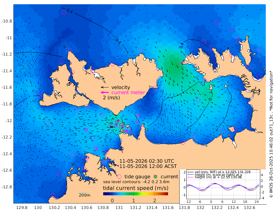 112cm/s 78T +4cm/s rms + 6cm/s 51T. Darwin_C1 52m 51cm/s 93T +4cm/s rms + 7cm/s -161T. Darwin_CW1 22m 48cm/s 72T +4cm/s rms + 8cm/s 61T. Darwin_CW2 34m 46cm/s 52T +3cm/s rms + 9cm/s 98T. Darwin_CW3 22m 57cm/s 89T +5cm/s rms + 7cm/s 88T. Darwin_C3 56m 68cm/s 65T +2cm/s rms + 9cm/s -126T. Darwin_CTbW 22m 33cm/s 88T +1cm/s rms + 1cm/s -47T. DARBGF 30m 31cm/s 116T +4cm/s rms + 3cm/s 80T. NRSDAR 19m 35cm Goodrich Bank 102cm Point Jenny 103cm Native Point 98cm Fish Reef 101cm Tapa Bay 73cm Point Fawcett (Offshore) 109cm Burge Point 102cm Munkunuwa 100cm Beagle A 101cm Parsons Bank 108cm Fenton Patches 92cm Hancox Shoal Area 111cm Nightcliff 98cm Darwin 92cm Charles Point Patches 59cm Glyde Point 25cm Chambers Bay 13cm Point Stuart 41cm Cape Hotham 36cm Christine Reef 12cm West Alligator Head -6cm East Field Island 30cm Two Hills Bay 26cm Camp Point 100cm Medina Inlet South 71cm South Barlow Point 58cm St. Asaph Bay 38cm Cape Van Dieman 41cm Snake Bay 38cm Cache Point 38cm Point Jahleel (Off) 43cm Cape Don 32cm Port Essington 39cm Smith Point - West 33cm NW Peacock Island 31cm North Of Jones Shoal 10cm Peacock Island 21cm Point David 36cm D'urville Point 19cm Copeland Island 24cm One Tree Point