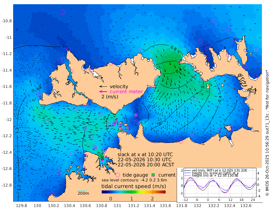 109cm/s 79T +4cm/s rms + 6cm/s 51T. Darwin_C1 52m 71cm/s 85T +4cm/s rms + 7cm/s -161T. Darwin_CW1 22m 35cm/s 77T +4cm/s rms + 8cm/s 61T. Darwin_CW2 34m 30cm/s 60T +3cm/s rms + 9cm/s 98T. Darwin_CW3 22m 42cm/s 88T +5cm/s rms + 7cm/s 88T. Darwin_C3 56m 67cm/s 63T +2cm/s rms + 9cm/s -126T. Darwin_CTbW 22m 43cm/s 92T +1cm/s rms + 1cm/s -47T. DARBGF 30m 39cm/s 119T +4cm/s rms + 3cm/s 80T. NRSDAR 19m 62cm Goodrich Bank 85cm Point Jenny 86cm Native Point 90cm Fish Reef 93cm Tapa Bay 90cm Point Fawcett (Offshore) 85cm Burge Point 97cm Munkunuwa 74cm Beagle A 98cm Parsons Bank 73cm Fenton Patches 81cm Hancox Shoal Area 79cm Nightcliff 98cm Darwin 107cm Charles Point Patches 36cm Glyde Point -35cm Chambers Bay -43cm Point Stuart 14cm Cape Hotham -32cm Christine Reef -59cm West Alligator Head -91cm East Field Island -4cm Two Hills Bay -5cm Camp Point 100cm Medina Inlet South 93cm South Barlow Point 78cm St. Asaph Bay 68cm Cape Van Dieman 76cm Snake Bay 63cm Cache Point 58cm Point Jahleel (Off) 56cm Cape Don 75cm Port Essington 72cm Smith Point - West 72cm NW Peacock Island 71cm North Of Jones Shoal 26cm Peacock Island 80cm Point David 78cm D'urville Point 77cm Copeland Island 80cm One Tree Point