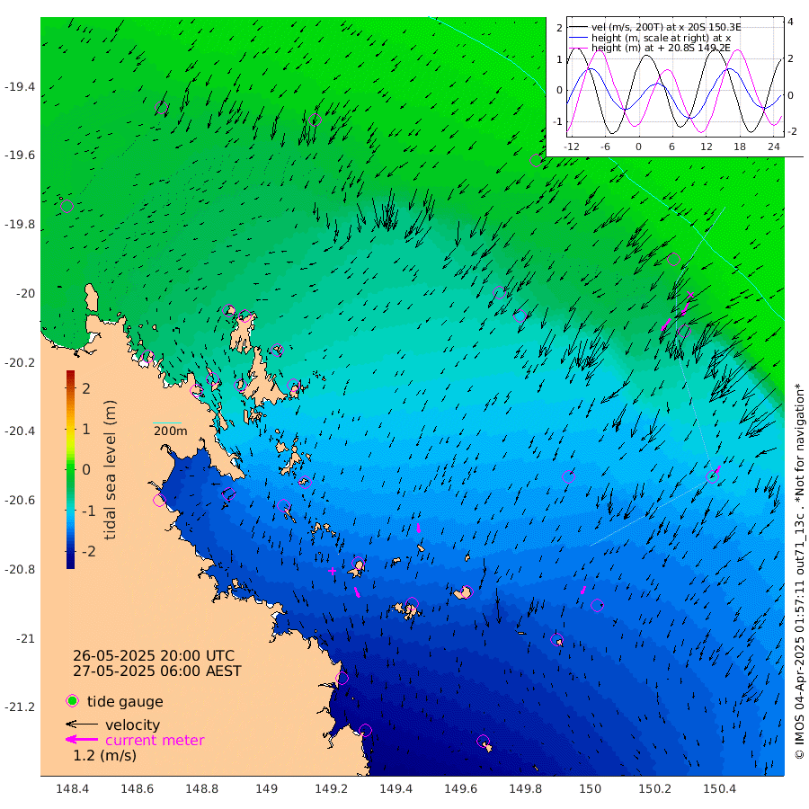 40cm/s 158T +10cm/s rms + 2cm/s 5T. Brampton I 18m 36cm/s 174T +9cm/s rms + 6cm/s 66T. Wigton I 38m 32cm/s -157T +7cm/s rms + 8cm/s 141T. Tern I 47m 56cm/s -154T +7cm/s rms + 12cm/s 54T. N Bugatti Rf 64m 54cm/s -145T +3cm/s rms + 13cm/s 178T. W Bugatti Rf 70m 29cm/s -153T +3cm/s rms + 3cm/s -130T. Creal Rf 69m -35cm Holbourne I -151cm Tern I -55cm Bugatti Rf -96cm Creal Rf -25cm White Tip I -26cm Wallaby Reef -12cm Kennedy Reef -5cm Unnamed Reef No. 2 -77cm Tideway Reef -62cm Hayman Island -104cm Square Reef -60cm Double Bay -84cm Molle Island -96cm Cid Harbour -69cm Hook Island -91cm Border Island -100cm Haslewood Island -95cm Shute Harbour -135cm Thomas Island -133cm Credlin Reef -157cm East Repulse Island -148cm Blacksmith Island -168cm Laguna Quays -153cm Carlisle Island (Off) -171cm St. Bees Island -155cm Scawfell Island -156cm Penrith Island -192cm Mackay Outer Harbour -204cm Hay Point -191cm Prudhoe Island