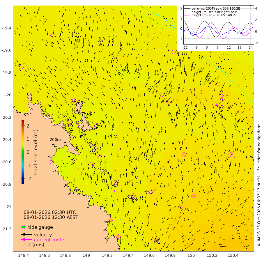 19cm/s -176T +10cm/s rms + 2cm/s 5T. Brampton I 18m 29cm/s 169T +9cm/s rms + 6cm/s 66T. Wigton I 38m 3cm/s -148T +7cm/s rms + 8cm/s 141T. Tern I 47m 29cm/s -171T +7cm/s rms + 12cm/s 54T. N Bugatti Rf 64m 39cm/s -151T +3cm/s rms + 13cm/s 178T. W Bugatti Rf 70m 14cm/s 175T +3cm/s rms + 3cm/s -130T. Creal Rf 69m 88cm Holbourne I 123cm Tern I 88cm Bugatti Rf 100cm Creal Rf 82cm White Tip I 76cm Wallaby Reef 79cm Kennedy Reef 80cm Unnamed Reef No. 2 83cm Tideway Reef 90cm Hayman Island 104cm Square Reef 100cm Double Bay 97cm Molle Island 83cm Cid Harbour 90cm Hook Island 76cm Border Island 79cm Haslewood Island 88cm Shute Harbour 92cm Thomas Island 106cm Credlin Reef 88cm East Repulse Island 91cm Blacksmith Island 93cm Laguna Quays 102cm Carlisle Island (Off) 107cm St. Bees Island 99cm Scawfell Island 126cm Penrith Island 117cm Mackay Outer Harbour 127cm Hay Point 140cm Prudhoe Island
