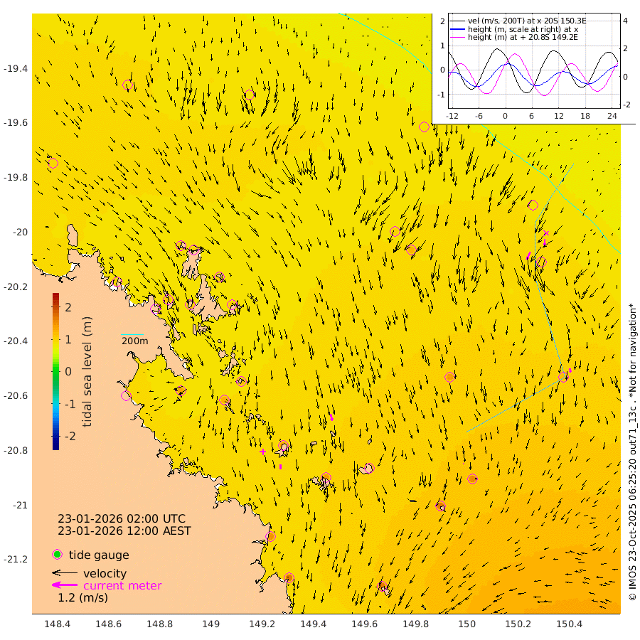 20cm/s -177T +10cm/s rms + 2cm/s 5T. Brampton I 18m 33cm/s 168T +9cm/s rms + 6cm/s 66T. Wigton I 38m 2cm/s 122T +7cm/s rms + 8cm/s 141T. Tern I 47m 29cm/s -177T +7cm/s rms + 12cm/s 54T. N Bugatti Rf 64m 38cm/s -154T +3cm/s rms + 13cm/s 178T. W Bugatti Rf 70m 19cm/s 167T +3cm/s rms + 3cm/s -130T. Creal Rf 69m 92cm Holbourne I 150cm Tern I 99cm Bugatti Rf 117cm Creal Rf 89cm White Tip I 87cm Wallaby Reef 85cm Kennedy Reef 87cm Unnamed Reef No. 2 98cm Tideway Reef 107cm Hayman Island 123cm Square Reef 98cm Double Bay 112cm Molle Island 113cm Cid Harbour 98cm Hook Island 98cm Border Island 107cm Haslewood Island 107cm Shute Harbour 116cm Thomas Island 138cm Credlin Reef 130cm East Repulse Island 125cm Blacksmith Island 120cm Laguna Quays 139cm Carlisle Island (Off) 142cm St. Bees Island 131cm Scawfell Island 159cm Penrith Island 148cm Mackay Outer Harbour 160cm Hay Point 159cm Prudhoe Island