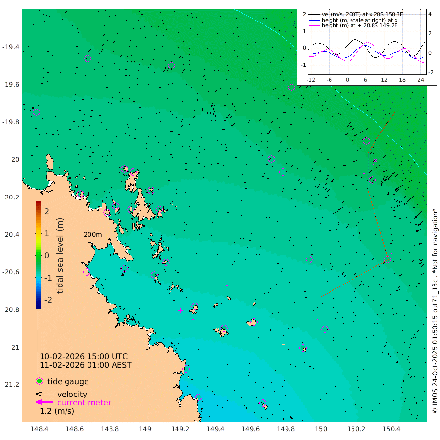6cm/s -178T +10cm/s rms + 2cm/s 5T. Brampton I 18m 10cm/s -166T +9cm/s rms + 6cm/s 66T. Wigton I 38m 7cm/s -138T +7cm/s rms + 8cm/s 141T. Tern I 47m 9cm/s -119T +7cm/s rms + 12cm/s 54T. N Bugatti Rf 64m 5cm/s -59T +3cm/s rms + 13cm/s 178T. W Bugatti Rf 70m 4cm/s -154T +3cm/s rms + 3cm/s -130T. Creal Rf 69m -64cm Holbourne I -73cm Tern I -46cm Bugatti Rf -53cm Creal Rf -39cm White Tip I -53cm Wallaby Reef -51cm Kennedy Reef -41cm Unnamed Reef No. 2 -65cm Tideway Reef -59cm Hayman Island -73cm Square Reef -75cm Double Bay -81cm Molle Island -59cm Cid Harbour -67cm Hook Island -59cm Border Island -61cm Haslewood Island -68cm Shute Harbour -71cm Thomas Island -67cm Credlin Reef -77cm East Repulse Island -62cm Blacksmith Island -80cm Laguna Quays -74cm Carlisle Island (Off) -66cm St. Bees Island -58cm Scawfell Island -66cm Penrith Island -79cm Mackay Outer Harbour -81cm Hay Point -88cm Prudhoe Island