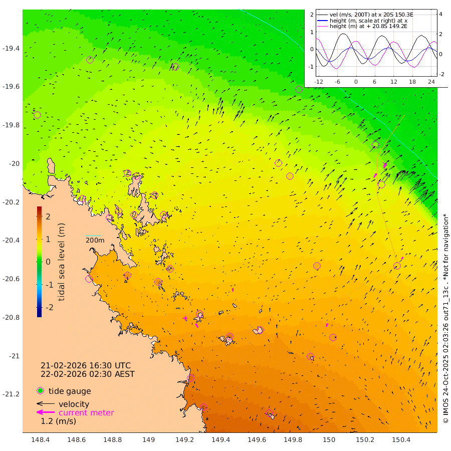 27cm/s -30T +10cm/s rms + 2cm/s 5T. Brampton I 18m 20cm/s -4T +9cm/s rms + 6cm/s 66T. Wigton I 38m 22cm/s 21T +7cm/s rms + 8cm/s 141T. Tern I 47m 36cm/s 27T +7cm/s rms + 12cm/s 54T. N Bugatti Rf 64m 33cm/s 33T +3cm/s rms + 13cm/s 178T. W Bugatti Rf 70m 19cm/s 33T +3cm/s rms + 3cm/s -130T. Creal Rf 69m 42cm Holbourne I 140cm Tern I 57cm Bugatti Rf 91cm Creal Rf 32cm White Tip I 34cm Wallaby Reef 31cm Kennedy Reef 16cm Unnamed Reef No. 2 72cm Tideway Reef 66cm Hayman Island 92cm Square Reef 66cm Double Bay 87cm Molle Island 94cm Cid Harbour 70cm Hook Island 87cm Border Island 92cm Haslewood Island 91cm Shute Harbour 123cm Thomas Island 121cm Credlin Reef 143cm East Repulse Island 144cm Blacksmith Island 152cm Laguna Quays 141cm Carlisle Island (Off) 166cm St. Bees Island 147cm Scawfell Island 151cm Penrith Island 177cm Mackay Outer Harbour 187cm Hay Point 169cm Prudhoe Island