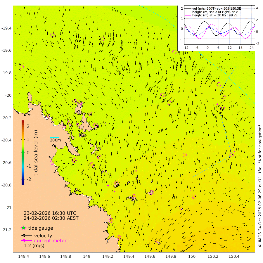 12cm/s -124T +10cm/s rms + 2cm/s 5T. Brampton I 18m 16cm/s 173T +9cm/s rms + 6cm/s 66T. Wigton I 38m 4cm/s -42T +7cm/s rms + 8cm/s 141T. Tern I 47m 12cm/s 177T +7cm/s rms + 12cm/s 54T. N Bugatti Rf 64m 21cm/s -145T +3cm/s rms + 13cm/s 178T. W Bugatti Rf 70m 6cm/s 157T +3cm/s rms + 3cm/s -130T. Creal Rf 69m 58cm Holbourne I 109cm Tern I 65cm Bugatti Rf 80cm Creal Rf 56cm White Tip I 50cm Wallaby Reef 57cm Kennedy Reef 56cm Unnamed Reef No. 2 64cm Tideway Reef 68cm Hayman Island 71cm Square Reef 73cm Double Bay 71cm Molle Island 74cm Cid Harbour 70cm Hook Island 68cm Border Island 70cm Haslewood Island 74cm Shute Harbour 85cm Thomas Island 98cm Credlin Reef 101cm East Repulse Island 93cm Blacksmith Island 92cm Laguna Quays 105cm Carlisle Island (Off) 114cm St. Bees Island 96cm Scawfell Island 112cm Penrith Island 117cm Mackay Outer Harbour 127cm Hay Point 119cm Prudhoe Island