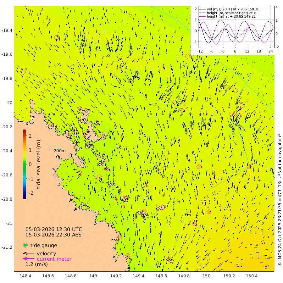 27cm/s 174T +10cm/s rms + 2cm/s 5T. Brampton I 18m 41cm/s 167T +9cm/s rms + 6cm/s 66T. Wigton I 38m 5cm/s -173T +7cm/s rms + 8cm/s 141T. Tern I 47m 41cm/s -174T +7cm/s rms + 12cm/s 54T. N Bugatti Rf 64m 51cm/s -153T +3cm/s rms + 13cm/s 178T. W Bugatti Rf 70m 20cm/s 167T +3cm/s rms + 3cm/s -130T. Creal Rf 69m 68cm Holbourne I 120cm Tern I 72cm Bugatti Rf 91cm Creal Rf 63cm White Tip I 59cm Wallaby Reef 72cm Kennedy Reef 61cm Unnamed Reef No. 2 68cm Tideway Reef 73cm Hayman Island 91cm Square Reef 71cm Double Bay 54cm Molle Island 73cm Cid Harbour 73cm Hook Island 65cm Border Island 63cm Haslewood Island 74cm Shute Harbour 83cm Thomas Island 101cm Credlin Reef 82cm East Repulse Island 85cm Blacksmith Island 81cm Laguna Quays 93cm Carlisle Island (Off) 114cm St. Bees Island 94cm Scawfell Island 118cm Penrith Island 111cm Mackay Outer Harbour 124cm Hay Point 141cm Prudhoe Island