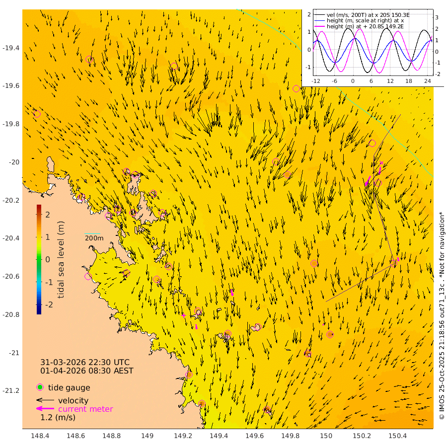 32cm/s 173T +10cm/s rms + 2cm/s 5T. Brampton I 18m 46cm/s 166T +9cm/s rms + 6cm/s 66T. Wigton I 38m 9cm/s -177T +7cm/s rms + 8cm/s 141T. Tern I 47m 51cm/s -170T +7cm/s rms + 12cm/s 54T. N Bugatti Rf 64m 72cm/s -153T +3cm/s rms + 13cm/s 178T. W Bugatti Rf 70m 26cm/s 170T +3cm/s rms + 3cm/s -130T. Creal Rf 69m 118cm Holbourne I 157cm Tern I 107cm Bugatti Rf 123cm Creal Rf 100cm White Tip I 103cm Wallaby Reef 104cm Kennedy Reef 105cm Unnamed Reef No. 2 109cm Tideway Reef 120cm Hayman Island 135cm Square Reef 128cm Double Bay 115cm Molle Island 112cm Cid Harbour 113cm Hook Island 99cm Border Island 105cm Haslewood Island 116cm Shute Harbour 118cm Thomas Island 137cm Credlin Reef 119cm East Repulse Island 115cm Blacksmith Island 116cm Laguna Quays 133cm Carlisle Island (Off) 140cm St. Bees Island 128cm Scawfell Island 157cm Penrith Island 144cm Mackay Outer Harbour 156cm Hay Point 178cm Prudhoe Island