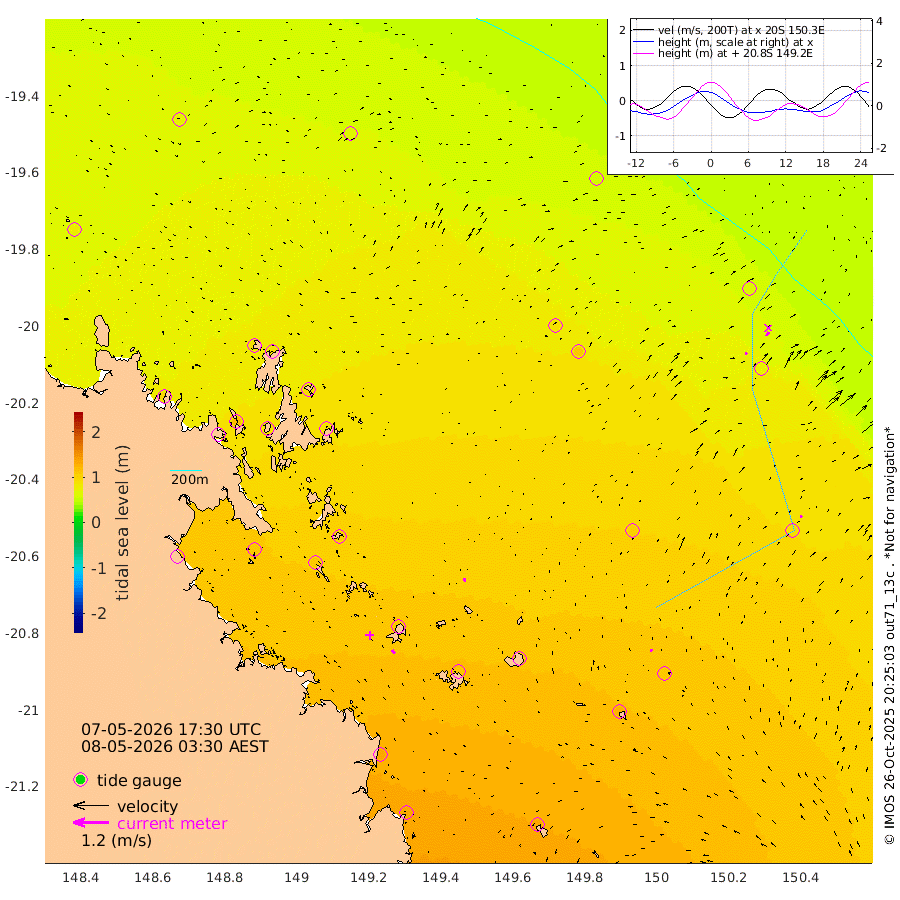 13cm/s -38T +10cm/s rms + 2cm/s 5T. Brampton I 18m 10cm/s -8T +9cm/s rms + 6cm/s 66T. Wigton I 38m 10cm/s 9T +7cm/s rms + 8cm/s 141T. Tern I 47m 15cm/s 33T +7cm/s rms + 12cm/s 54T. N Bugatti Rf 64m 7cm/s 22T +3cm/s rms + 13cm/s 178T. W Bugatti Rf 70m 7cm/s 22T +3cm/s rms + 3cm/s -130T. Creal Rf 69m 78cm Holbourne I 112cm Tern I 75cm Bugatti Rf 87cm Creal Rf 66cm White Tip I 70cm Wallaby Reef 67cm Kennedy Reef 58cm Unnamed Reef No. 2 88cm Tideway Reef 86cm Hayman Island 105cm Square Reef 92cm Double Bay 114cm Molle Island 90cm Cid Harbour 88cm Hook Island 92cm Border Island 88cm Haslewood Island 94cm Shute Harbour 102cm Thomas Island 105cm Credlin Reef 107cm East Repulse Island 109cm Blacksmith Island 119cm Laguna Quays 111cm Carlisle Island (Off) 111cm St. Bees Island 108cm Scawfell Island 125cm Penrith Island 129cm Mackay Outer Harbour 133cm Hay Point 130cm Prudhoe Island