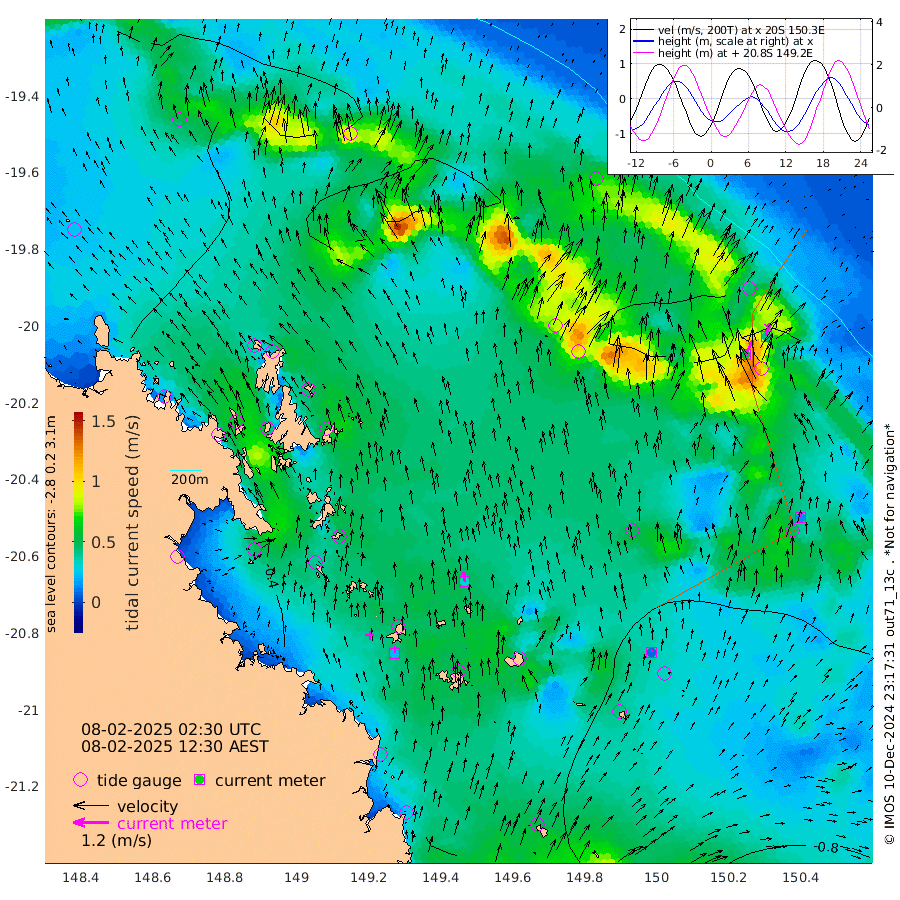 22cm/s 6T +10cm/s rms + 2cm/s 5T. Brampton I 18m 32cm/s -9T +9cm/s rms + 6cm/s 66T. Wigton I 38m 8cm/s 37T +7cm/s rms + 8cm/s 141T. Tern I 47m 42cm/s 15T +7cm/s rms + 12cm/s 54T. N Bugatti Rf 64m 54cm/s 26T +3cm/s rms + 13cm/s 178T. W Bugatti Rf 70m 13cm/s -1T +3cm/s rms + 3cm/s -130T. Creal Rf 69m -53cm Holbourne I -79cm Tern I -46cm Bugatti Rf -55cm Creal Rf -44cm White Tip I -42cm Wallaby Reef -46cm Kennedy Reef -52cm Unnamed Reef No. 2 -43cm Tideway Reef -54cm Hayman Island -47cm Square Reef -69cm Double Bay -46cm Molle Island -46cm Cid Harbour -52cm Hook Island -38cm Border Island -43cm Haslewood Island -53cm Shute Harbour -53cm Thomas Island -65cm Credlin Reef -65cm East Repulse Island -46cm Blacksmith Island -52cm Laguna Quays -68cm Carlisle Island (Off) -68cm St. Bees Island -64cm Scawfell Island -75cm Penrith Island -73cm Mackay Outer Harbour -82cm Hay Point -90cm Prudhoe Island