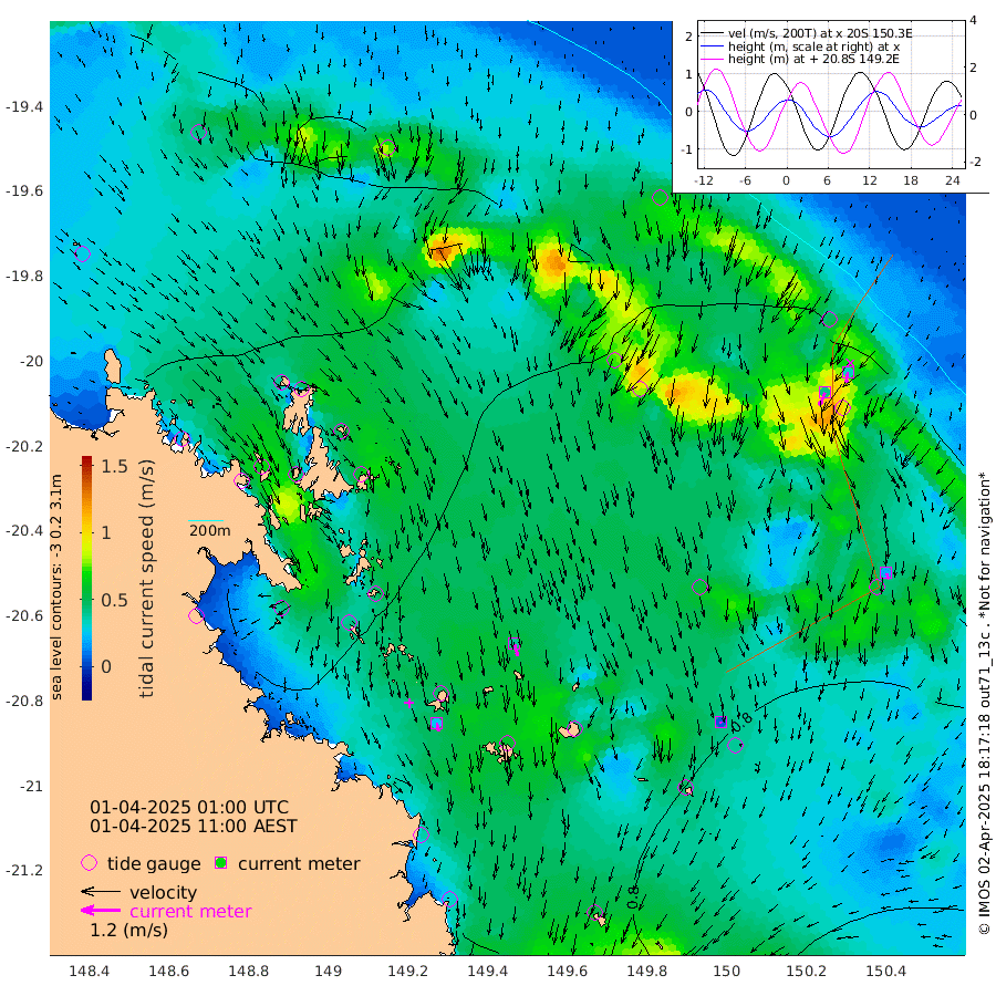 25cm/s 168T +10cm/s rms + 2cm/s 5T. Brampton I 18m 38cm/s 165T +9cm/s rms + 6cm/s 66T. Wigton I 38m 5cm/s 140T +7cm/s rms + 8cm/s 141T. Tern I 47m 34cm/s -171T +7cm/s rms + 12cm/s 54T. N Bugatti Rf 64m 43cm/s -156T +3cm/s rms + 13cm/s 178T. W Bugatti Rf 70m 19cm/s 159T +3cm/s rms + 3cm/s -130T. Creal Rf 69m 62cm Holbourne I 120cm Tern I 64cm Bugatti Rf 87cm Creal Rf 52cm White Tip I 49cm Wallaby Reef 52cm Kennedy Reef 50cm Unnamed Reef No. 2 59cm Tideway Reef 66cm Hayman Island 79cm Square Reef 74cm Double Bay 61cm Molle Island 71cm Cid Harbour 66cm Hook Island 56cm Border Island 70cm Haslewood Island 71cm Shute Harbour 82cm Thomas Island 96cm Credlin Reef 88cm East Repulse Island 85cm Blacksmith Island 85cm Laguna Quays 101cm Carlisle Island (Off) 116cm St. Bees Island 100cm Scawfell Island 117cm Penrith Island 115cm Mackay Outer Harbour 128cm Hay Point 137cm Prudhoe Island