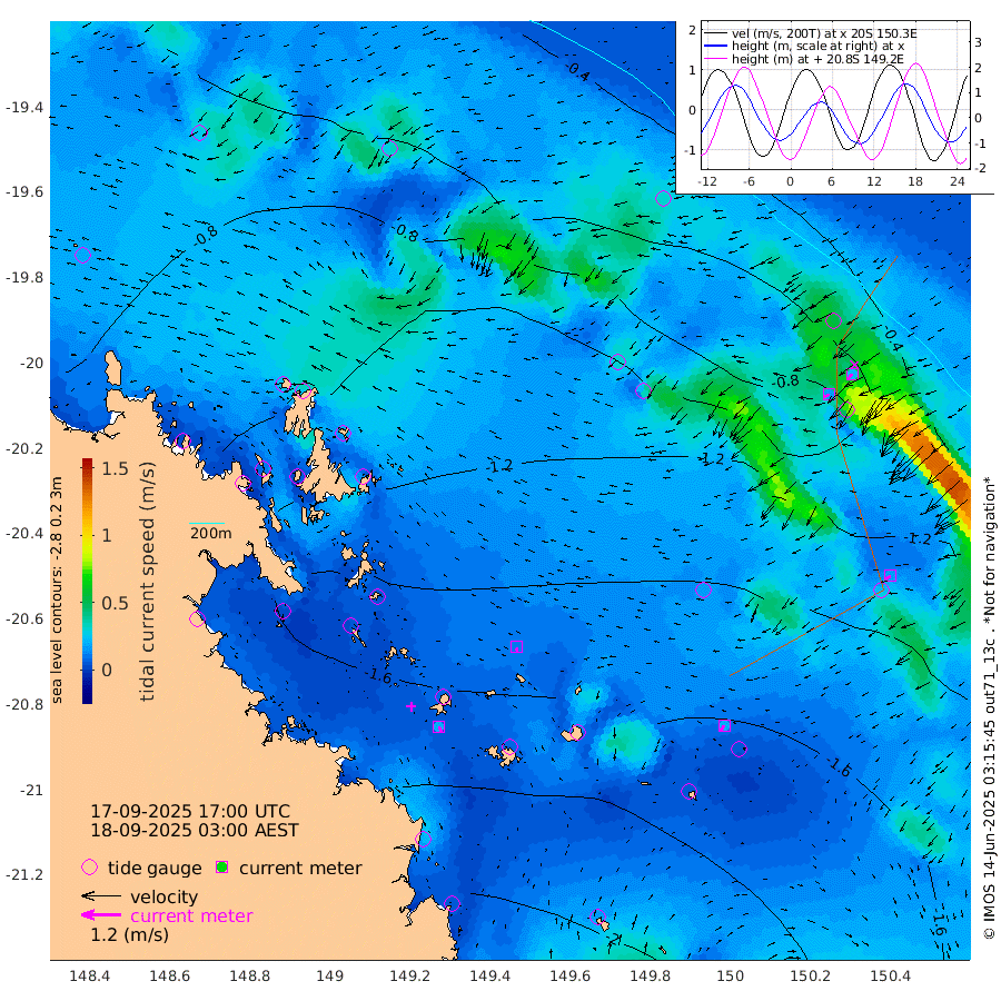 19cm/s 156T +10cm/s rms + 2cm/s 5T. Brampton I 18m 11cm/s -173T +9cm/s rms + 6cm/s 66T. Wigton I 38m 20cm/s -150T +7cm/s rms + 8cm/s 141T. Tern I 47m 23cm/s -142T +7cm/s rms + 12cm/s 54T. N Bugatti Rf 64m 17cm/s -116T +3cm/s rms + 13cm/s 178T. W Bugatti Rf 70m 16cm/s -122T +3cm/s rms + 3cm/s -130T. Creal Rf 69m -83cm Holbourne I -181cm Tern I -94cm Bugatti Rf -129cm Creal Rf -70cm White Tip I -78cm Wallaby Reef -56cm Kennedy Reef -56cm Unnamed Reef No. 2 -118cm Tideway Reef -109cm Hayman Island -152cm Square Reef -114cm Double Bay -126cm Molle Island -133cm Cid Harbour -108cm Hook Island -119cm Border Island -133cm Haslewood Island -133cm Shute Harbour -162cm Thomas Island -169cm Credlin Reef -183cm East Repulse Island -169cm Blacksmith Island -185cm Laguna Quays -182cm Carlisle Island (Off) -203cm St. Bees Island -182cm Scawfell Island -191cm Penrith Island -209cm Mackay Outer Harbour -221cm Hay Point -222cm Prudhoe Island