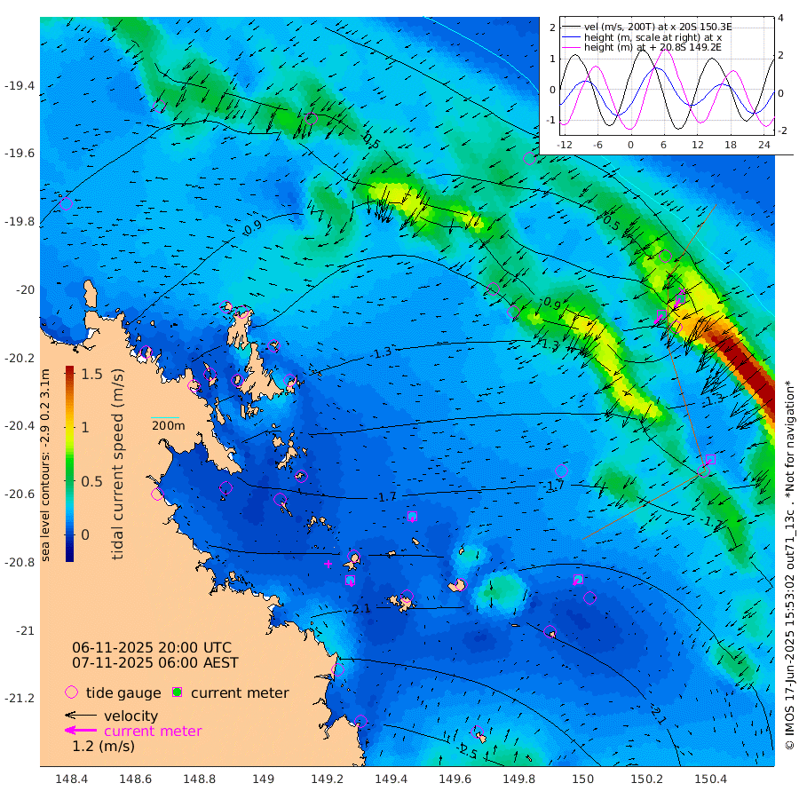 24cm/s 168T +10cm/s rms + 2cm/s 5T. Brampton I 18m 21cm/s -174T +9cm/s rms + 6cm/s 66T. Wigton I 38m 27cm/s -146T +7cm/s rms + 8cm/s 141T. Tern I 47m 45cm/s -152T +7cm/s rms + 12cm/s 54T. N Bugatti Rf 64m 43cm/s -140T +3cm/s rms + 13cm/s 178T. W Bugatti Rf 70m 23cm/s -137T +3cm/s rms + 3cm/s -130T. Creal Rf 69m -79cm Holbourne I -198cm Tern I -88cm Bugatti Rf -133cm Creal Rf -55cm White Tip I -67cm Wallaby Reef -54cm Kennedy Reef -36cm Unnamed Reef No. 2 -114cm Tideway Reef -101cm Hayman Island -148cm Square Reef -111cm Double Bay -140cm Molle Island -141cm Cid Harbour -110cm Hook Island -128cm Border Island -144cm Haslewood Island -138cm Shute Harbour -175cm Thomas Island -173cm Credlin Reef -201cm East Repulse Island -198cm Blacksmith Island -214cm Laguna Quays -202cm Carlisle Island (Off) -227cm St. Bees Island -204cm Scawfell Island -208cm Penrith Island -239cm Mackay Outer Harbour -253cm Hay Point -238cm Prudhoe Island