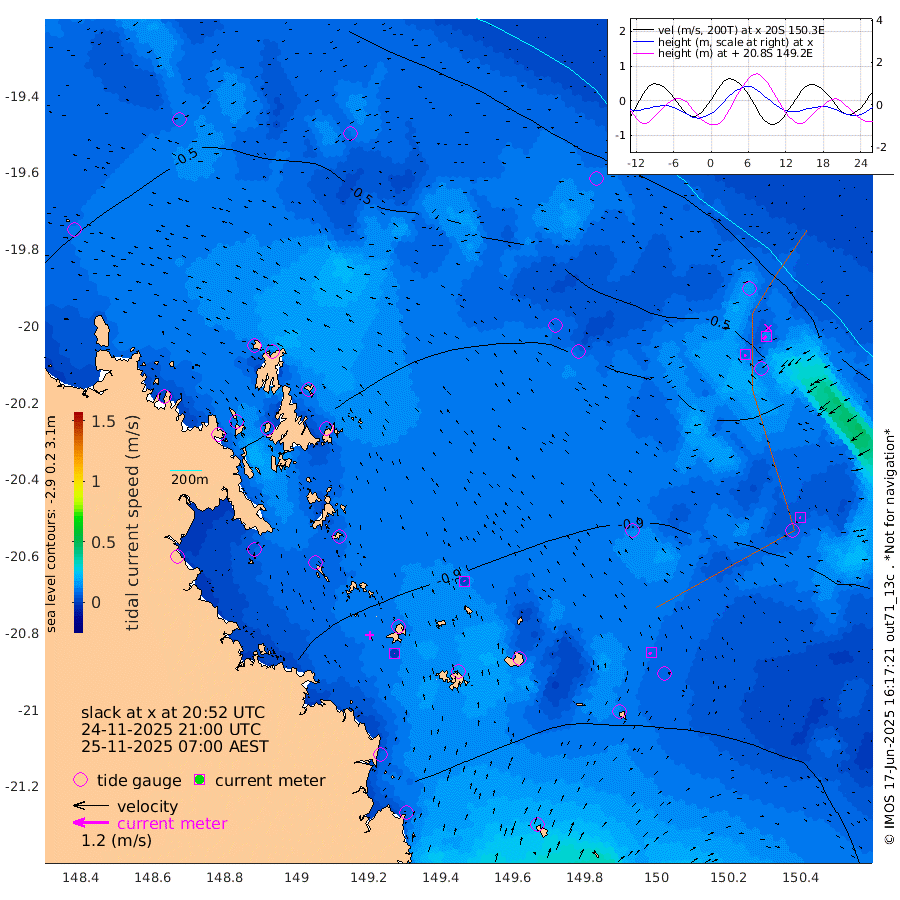 1cm/s -161T +10cm/s rms + 2cm/s 5T. Brampton I 18m 4cm/s -58T +9cm/s rms + 6cm/s 66T. Wigton I 38m 9cm/s -144T +7cm/s rms + 8cm/s 141T. Tern I 47m 13cm/s -140T +7cm/s rms + 12cm/s 54T. N Bugatti Rf 64m 7cm/s -150T +3cm/s rms + 13cm/s 178T. W Bugatti Rf 70m 6cm/s -99T +3cm/s rms + 3cm/s -130T. Creal Rf 69m -57cm Holbourne I -111cm Tern I -58cm Bugatti Rf -79cm Creal Rf -44cm White Tip I -48cm Wallaby Reef -48cm Kennedy Reef -33cm Unnamed Reef No. 2 -66cm Tideway Reef -66cm Hayman Island -88cm Square Reef -63cm Double Bay -83cm Molle Island -83cm Cid Harbour -67cm Hook Island -79cm Border Island -81cm Haslewood Island -79cm Shute Harbour -91cm Thomas Island -98cm Credlin Reef -102cm East Repulse Island -111cm Blacksmith Island -111cm Laguna Quays -109cm Carlisle Island (Off) -124cm St. Bees Island -119cm Scawfell Island -125cm Penrith Island -127cm Mackay Outer Harbour -135cm Hay Point -125cm Prudhoe Island