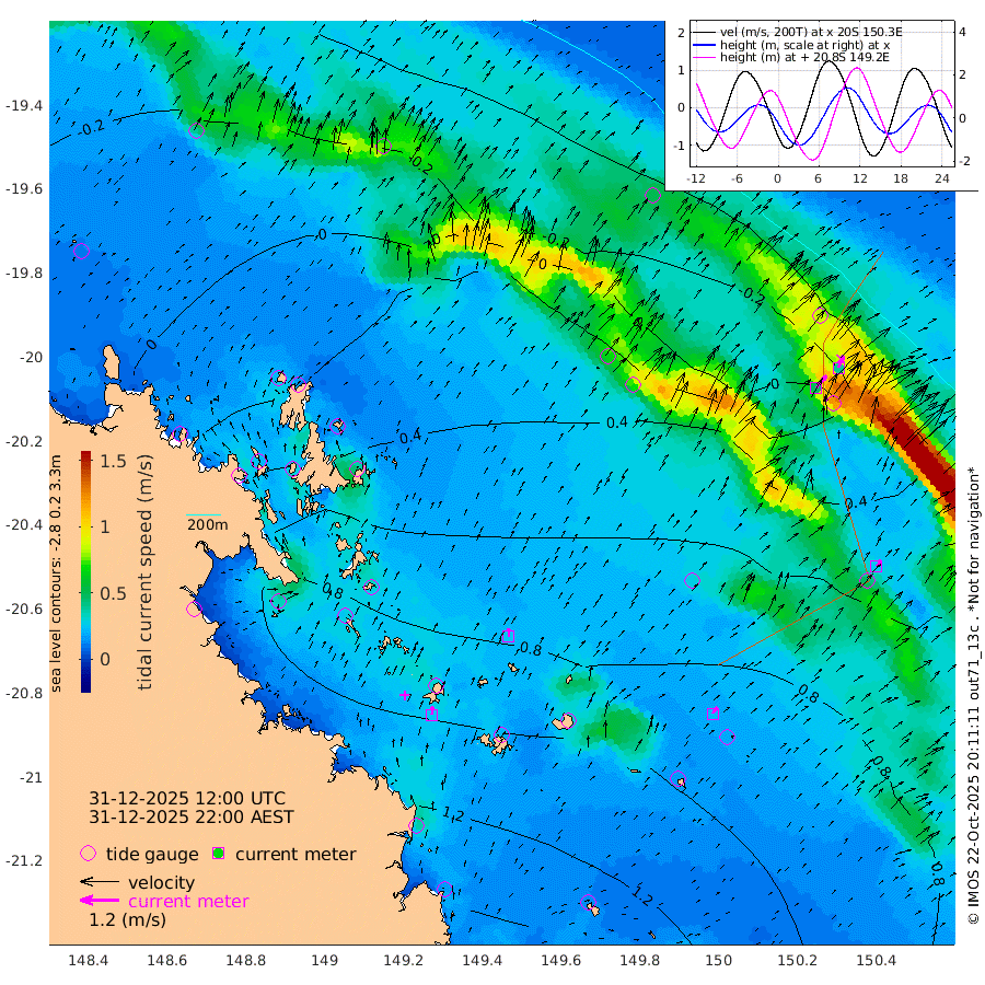 26cm/s 2T +10cm/s rms + 2cm/s 5T. Brampton I 18m 25cm/s -1T +9cm/s rms + 6cm/s 66T. Wigton I 38m 24cm/s 37T +7cm/s rms + 8cm/s 141T. Tern I 47m 40cm/s 21T +7cm/s rms + 12cm/s 54T. N Bugatti Rf 64m 48cm/s 40T +3cm/s rms + 13cm/s 178T. W Bugatti Rf 70m 24cm/s 34T +3cm/s rms + 3cm/s -130T. Creal Rf 69m -12cm Holbourne I 75cm Tern I 0cm Bugatti Rf 34cm Creal Rf -24cm White Tip I -15cm Wallaby Reef -32cm Kennedy Reef -42cm Unnamed Reef No. 2 19cm Tideway Reef 5cm Hayman Island 42cm Square Reef 2cm Double Bay 19cm Molle Island 37cm Cid Harbour 9cm Hook Island 33cm Border Island 44cm Haslewood Island 35cm Shute Harbour 65cm Thomas Island 58cm Credlin Reef 77cm East Repulse Island 76cm Blacksmith Island 92cm Laguna Quays 75cm Carlisle Island (Off) 87cm St. Bees Island 89cm Scawfell Island 80cm Penrith Island 105cm Mackay Outer Harbour 113cm Hay Point 107cm Prudhoe Island
