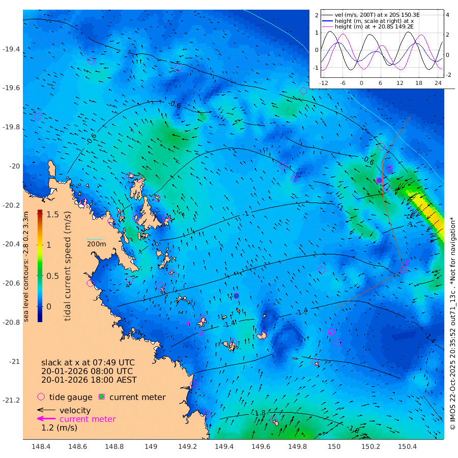 14cm/s 134T +10cm/s rms + 2cm/s 5T. Brampton I 18m 3cm/s -45T +9cm/s rms + 6cm/s 66T. Wigton I 38m 18cm/s -151T +7cm/s rms + 8cm/s 141T. Tern I 47m 11cm/s -116T +7cm/s rms + 12cm/s 54T. N Bugatti Rf 64m 6cm/s -77T +3cm/s rms + 13cm/s 178T. W Bugatti Rf 70m 11cm/s -106T +3cm/s rms + 3cm/s -130T. Creal Rf 69m -63cm Holbourne I -178cm Tern I -81cm Bugatti Rf -121cm Creal Rf -56cm White Tip I -53cm Wallaby Reef -53cm Kennedy Reef -39cm Unnamed Reef No. 2 -91cm Tideway Reef -91cm Hayman Island -126cm Square Reef -74cm Double Bay -102cm Molle Island -113cm Cid Harbour -86cm Hook Island -100cm Border Island -106cm Haslewood Island -108cm Shute Harbour -143cm Thomas Island -149cm Credlin Reef -153cm East Repulse Island -156cm Blacksmith Island -163cm Laguna Quays -156cm Carlisle Island (Off) -170cm St. Bees Island -160cm Scawfell Island -188cm Penrith Island -201cm Mackay Outer Harbour -217cm Hay Point -214cm Prudhoe Island