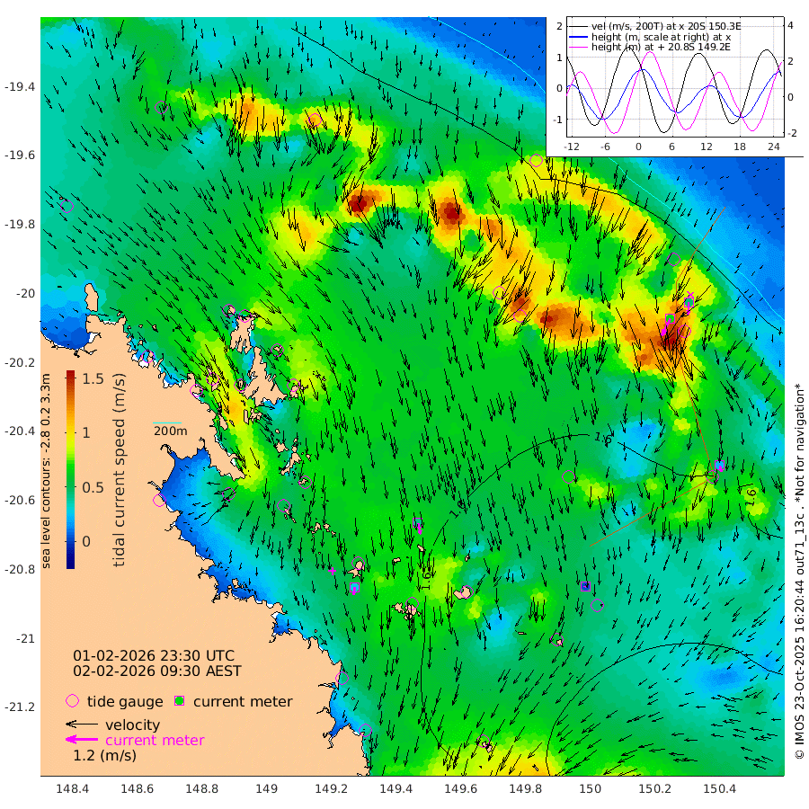 27cm/s -171T +10cm/s rms + 2cm/s 5T. Brampton I 18m 42cm/s 166T +9cm/s rms + 6cm/s 66T. Wigton I 38m 3cm/s -146T +7cm/s rms + 8cm/s 141T. Tern I 47m 44cm/s -178T +7cm/s rms + 12cm/s 54T. N Bugatti Rf 64m 70cm/s -154T +3cm/s rms + 13cm/s 178T. W Bugatti Rf 70m 23cm/s 170T +3cm/s rms + 3cm/s -130T. Creal Rf 69m 162cm Holbourne I 221cm Tern I 153cm Bugatti Rf 174cm Creal Rf 143cm White Tip I 143cm Wallaby Reef 143cm Kennedy Reef 147cm Unnamed Reef No. 2 160cm Tideway Reef 169cm Hayman Island 193cm Square Reef 180cm Double Bay 173cm Molle Island 165cm Cid Harbour 166cm Hook Island 150cm Border Island 156cm Haslewood Island 170cm Shute Harbour 176cm Thomas Island 202cm Credlin Reef 189cm East Repulse Island 174cm Blacksmith Island 179cm Laguna Quays 201cm Carlisle Island (Off) 209cm St. Bees Island 189cm Scawfell Island 221cm Penrith Island 213cm Mackay Outer Harbour 229cm Hay Point 246cm Prudhoe Island