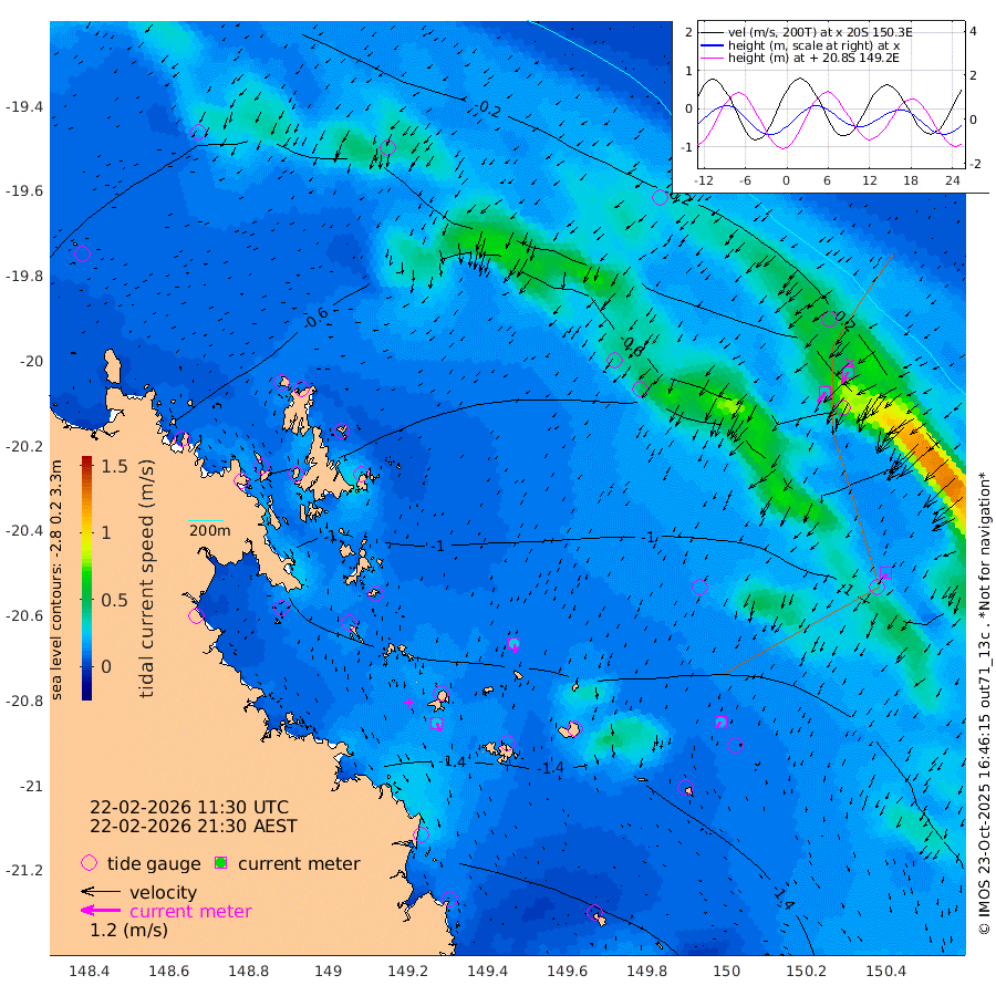 27cm/s 158T +10cm/s rms + 2cm/s 5T. Brampton I 18m 27cm/s 176T +9cm/s rms + 6cm/s 66T. Wigton I 38m 21cm/s -156T +7cm/s rms + 8cm/s 141T. Tern I 47m 39cm/s -154T +7cm/s rms + 12cm/s 54T. N Bugatti Rf 64m 37cm/s -145T +3cm/s rms + 13cm/s 178T. W Bugatti Rf 70m 18cm/s -155T +3cm/s rms + 3cm/s -130T. Creal Rf 69m -47cm Holbourne I -120cm Tern I -51cm Bugatti Rf -78cm Creal Rf -31cm White Tip I -37cm Wallaby Reef -31cm Kennedy Reef -17cm Unnamed Reef No. 2 -68cm Tideway Reef -65cm Hayman Island -85cm Square Reef -68cm Double Bay -101cm Molle Island -87cm Cid Harbour -69cm Hook Island -80cm Border Island -89cm Haslewood Island -86cm Shute Harbour -110cm Thomas Island -103cm Credlin Reef -129cm East Repulse Island -127cm Blacksmith Island -140cm Laguna Quays -126cm Carlisle Island (Off) -137cm St. Bees Island -127cm Scawfell Island -129cm Penrith Island -154cm Mackay Outer Harbour -161cm Hay Point -141cm Prudhoe Island