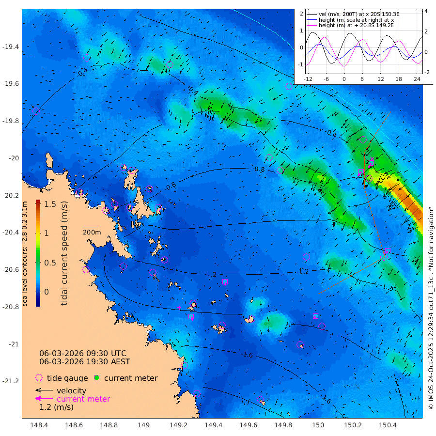 27cm/s 157T +10cm/s rms + 2cm/s 5T. Brampton I 18m 23cm/s 179T +9cm/s rms + 6cm/s 66T. Wigton I 38m 23cm/s -152T +7cm/s rms + 8cm/s 141T. Tern I 47m 36cm/s -154T +7cm/s rms + 12cm/s 54T. N Bugatti Rf 64m 36cm/s -141T +3cm/s rms + 13cm/s 178T. W Bugatti Rf 70m 19cm/s -148T +3cm/s rms + 3cm/s -130T. Creal Rf 69m -55cm Holbourne I -145cm Tern I -61cm Bugatti Rf -96cm Creal Rf -36cm White Tip I -38cm Wallaby Reef -35cm Kennedy Reef -22cm Unnamed Reef No. 2 -79cm Tideway Reef -66cm Hayman Island -99cm Square Reef -84cm Double Bay -99cm Molle Island -87cm Cid Harbour -81cm Hook Island -82cm Border Island -93cm Haslewood Island -95cm Shute Harbour -128cm Thomas Island -120cm Credlin Reef -139cm East Repulse Island -130cm Blacksmith Island -154cm Laguna Quays -140cm Carlisle Island (Off) -150cm St. Bees Island -126cm Scawfell Island -144cm Penrith Island -178cm Mackay Outer Harbour -188cm Hay Point -186cm Prudhoe Island