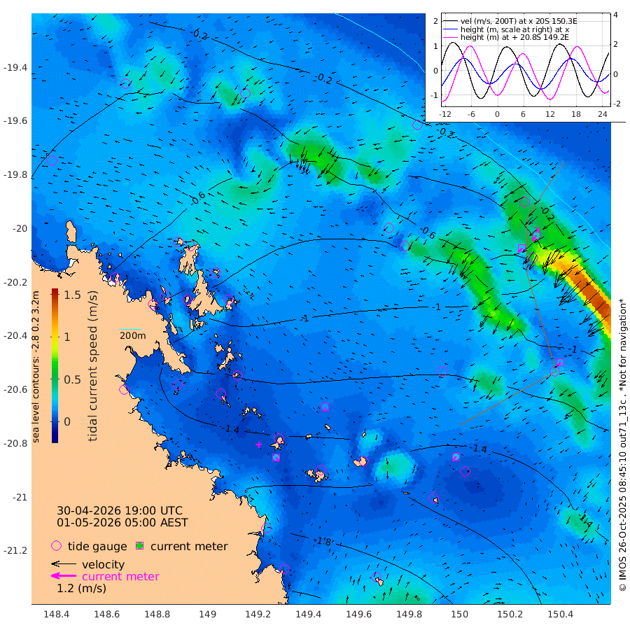 22cm/s 156T +10cm/s rms + 2cm/s 5T. Brampton I 18m 16cm/s -174T +9cm/s rms + 6cm/s 66T. Wigton I 38m 24cm/s -155T +7cm/s rms + 8cm/s 141T. Tern I 47m 33cm/s -146T +7cm/s rms + 12cm/s 54T. N Bugatti Rf 64m 25cm/s -136T +3cm/s rms + 13cm/s 178T. W Bugatti Rf 70m 20cm/s -140T +3cm/s rms + 3cm/s -130T. Creal Rf 69m -54cm Holbourne I -159cm Tern I -64cm Bugatti Rf -105cm Creal Rf -36cm White Tip I -36cm Wallaby Reef -27cm Kennedy Reef -21cm Unnamed Reef No. 2 -81cm Tideway Reef -67cm Hayman Island -108cm Square Reef -88cm Double Bay -78cm Molle Island -89cm Cid Harbour -82cm Hook Island -84cm Border Island -95cm Haslewood Island -97cm Shute Harbour -132cm Thomas Island -133cm Credlin Reef -146cm East Repulse Island -134cm Blacksmith Island -158cm Laguna Quays -149cm Carlisle Island (Off) -178cm St. Bees Island -150cm Scawfell Island -152cm Penrith Island -187cm Mackay Outer Harbour -201cm Hay Point -208cm Prudhoe Island