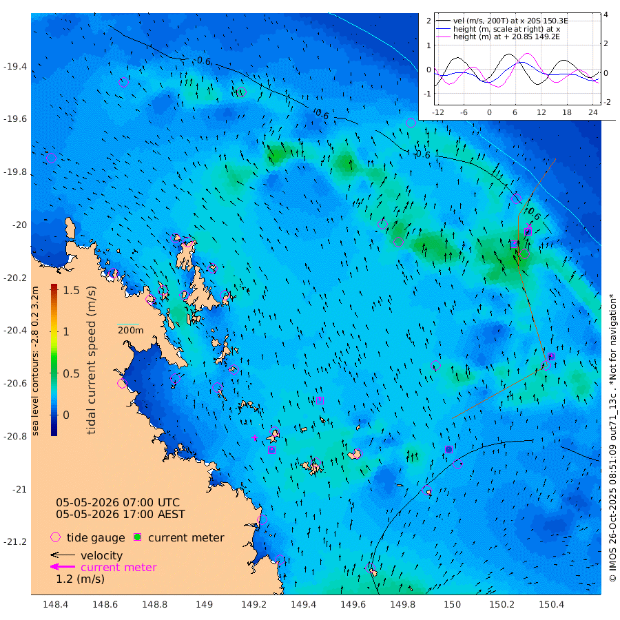 11cm/s -10T +10cm/s rms + 2cm/s 5T. Brampton I 18m 19cm/s -14T +9cm/s rms + 6cm/s 66T. Wigton I 38m 2cm/s 33T +7cm/s rms + 8cm/s 141T. Tern I 47m 8cm/s -22T +7cm/s rms + 12cm/s 54T. N Bugatti Rf 64m 14cm/s 31T +3cm/s rms + 13cm/s 178T. W Bugatti Rf 70m 10cm/s -17T +3cm/s rms + 3cm/s -130T. Creal Rf 69m -69cm Holbourne I -105cm Tern I -72cm Bugatti Rf -85cm Creal Rf -63cm White Tip I -63cm Wallaby Reef -68cm Kennedy Reef -57cm Unnamed Reef No. 2 -70cm Tideway Reef -71cm Hayman Island -93cm Square Reef -64cm Double Bay -81cm Molle Island -84cm Cid Harbour -73cm Hook Island -78cm Border Island -77cm Haslewood Island -77cm Shute Harbour -83cm Thomas Island -95cm Credlin Reef -86cm East Repulse Island -99cm Blacksmith Island -91cm Laguna Quays -95cm Carlisle Island (Off) -111cm St. Bees Island -105cm Scawfell Island -112cm Penrith Island -106cm Mackay Outer Harbour -112cm Hay Point -110cm Prudhoe Island