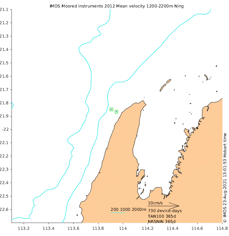 These maps show some basic analyses of the velocity data: mean and sub-tidal variance for several layers and time-windows, and tidal harmonics for the depth-average velocity using the whole record. Click through to see more detailed plots of the selected dataset or to download those data from the AODN thredds server.