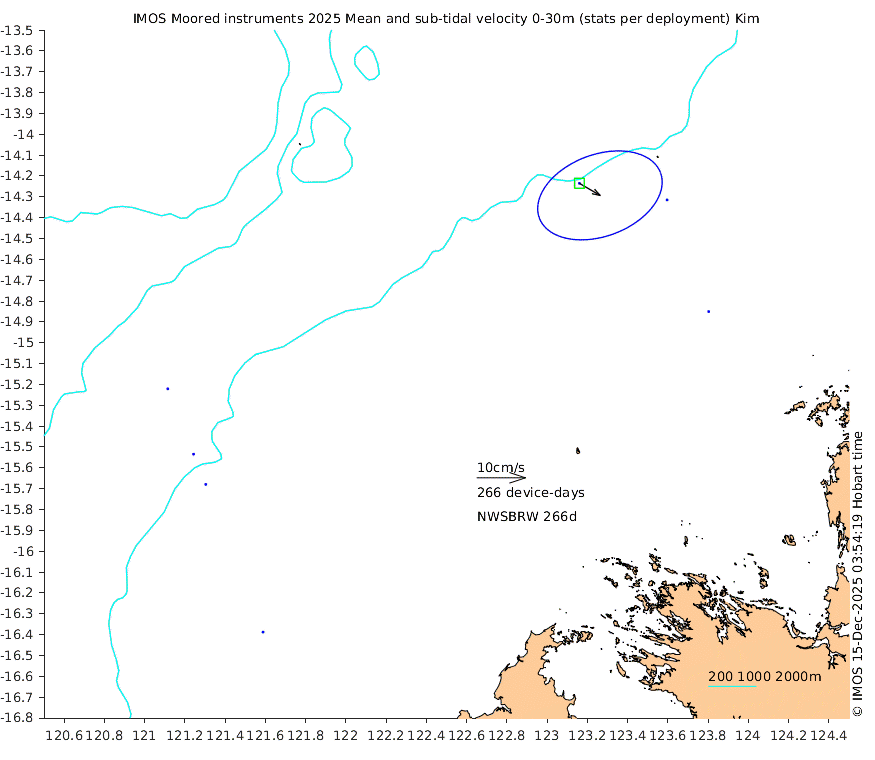 These maps show some basic analyses of the velocity data: mean (all-time in black and seasonal in colour) and sub-tidal variance for several layers and time-windows, and tidal harmonics for the depth-average velocity using the whole record. Click through to see more detailed plots of the selected dataset or to download those data from the AODN thredds server.
