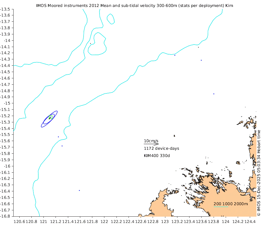 These maps show some basic analyses of the velocity data: mean (all-time in black and seasonal in colour) and sub-tidal variance for several layers and time-windows, and tidal harmonics for the depth-average velocity using the whole record. Click through to see more detailed plots of the selected dataset or to download those data from the AODN thredds server.