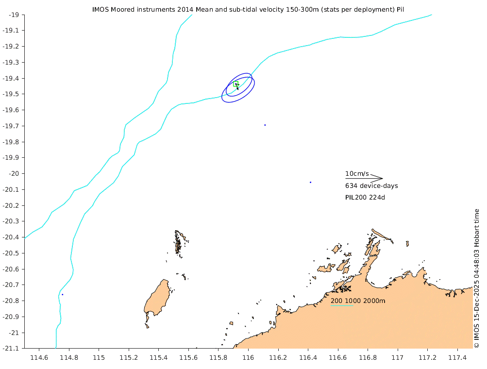 These maps show some basic analyses of the velocity data: mean (all-time in black and seasonal in colour) and sub-tidal variance for several layers and time-windows, and tidal harmonics for the depth-average velocity using the whole record. Click through to see more detailed plots of the selected dataset or to download those data from the AODN thredds server.