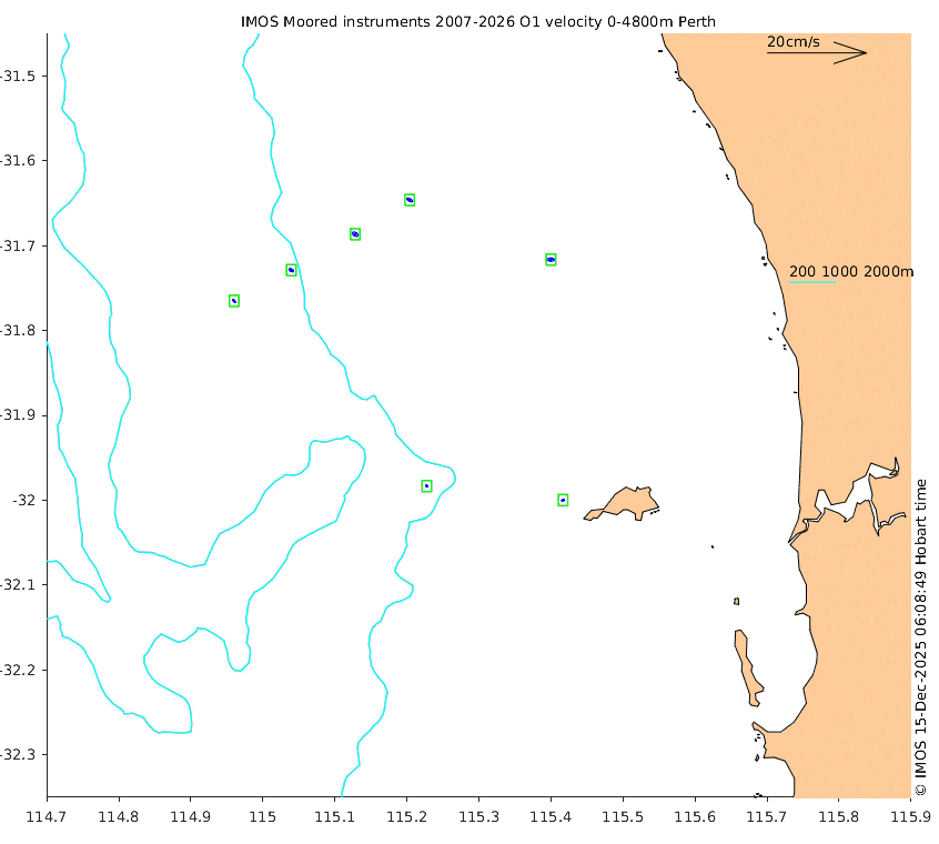 These maps show some basic analyses of the velocity data: mean (all-time in black and seasonal in colour) and sub-tidal variance for several layers and time-windows, and tidal harmonics for the depth-average velocity using the whole record. Click through to see more detailed plots of the selected dataset or to download those data from the AODN thredds server.