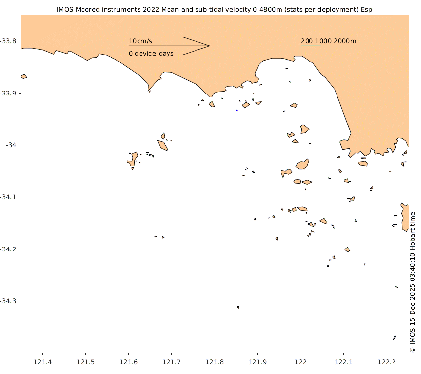 These maps show some basic analyses of the velocity data: mean (all-time in black and seasonal in colour) and sub-tidal variance for several layers and time-windows, and tidal harmonics for the depth-average velocity using the whole record. Click through to see more detailed plots of the selected dataset or to download those data from the AODN thredds server.