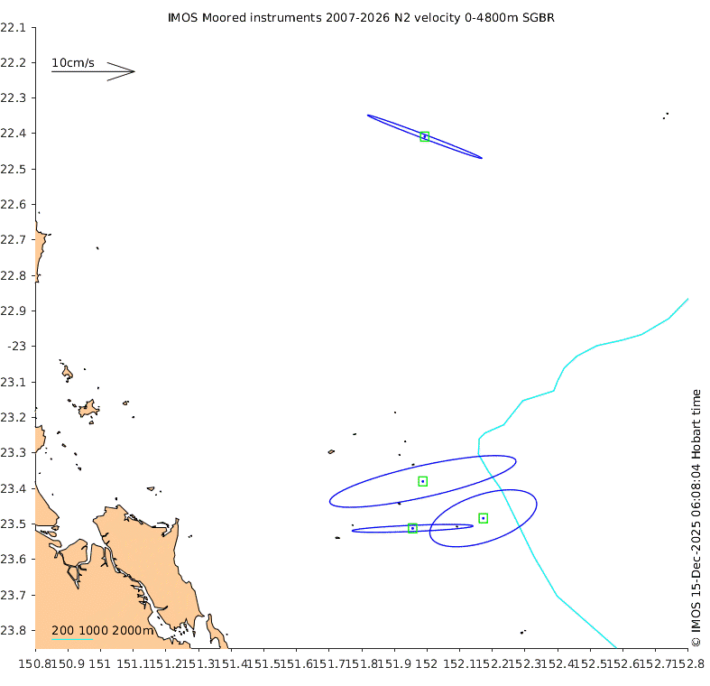 These maps show some basic analyses of the velocity data: mean (all-time in black and seasonal in colour) and sub-tidal variance for several layers and time-windows, and tidal harmonics for the depth-average velocity using the whole record. Click through to see more detailed plots of the selected dataset or to download those data from the AODN thredds server.