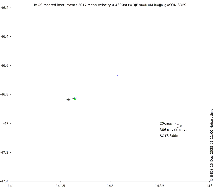 These maps show some basic analyses of the velocity data: mean (all-time in black and seasonal in colour) and sub-tidal variance for several layers and time-windows, and tidal harmonics for the depth-average velocity using the whole record. Click through to see more detailed plots of the selected dataset or to download those data from the AODN thredds server.