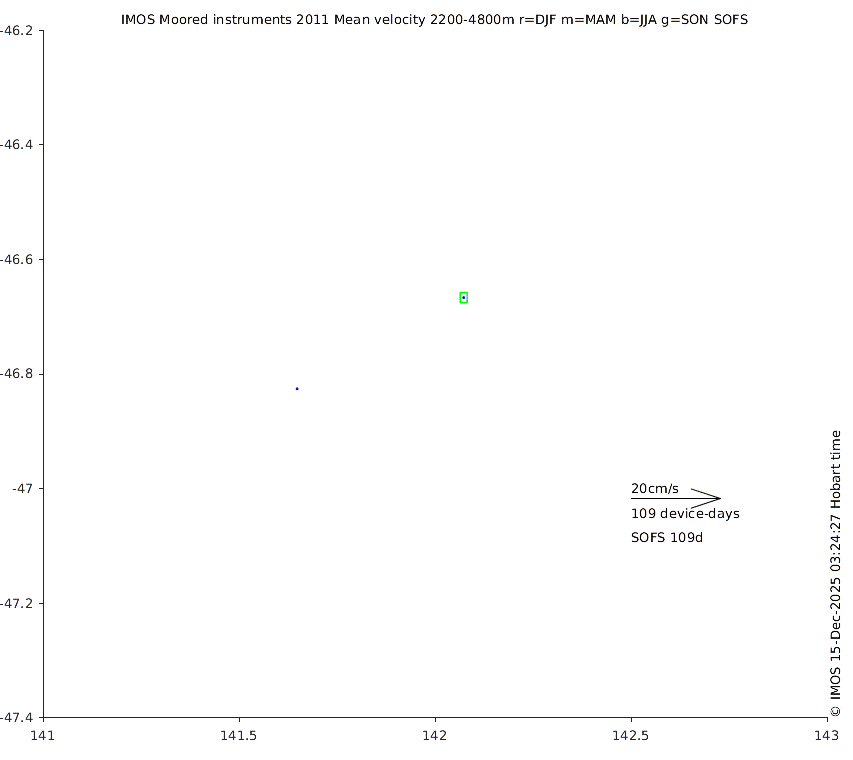 These maps show some basic analyses of the velocity data: mean (all-time in black and seasonal in colour) and sub-tidal variance for several layers and time-windows, and tidal harmonics for the depth-average velocity using the whole record. Click through to see more detailed plots of the selected dataset or to download those data from the AODN thredds server.