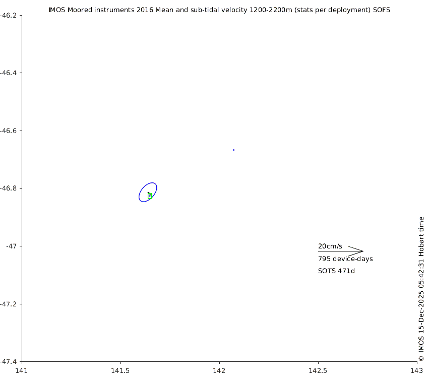 These maps show some basic analyses of the velocity data: mean (all-time in black and seasonal in colour) and sub-tidal variance for several layers and time-windows, and tidal harmonics for the depth-average velocity using the whole record. Click through to see more detailed plots of the selected dataset or to download those data from the AODN thredds server.