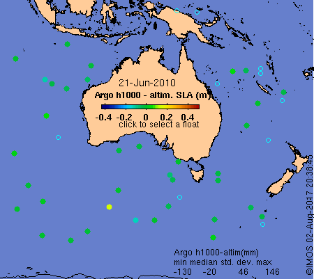 Click on an Argo float on the map above or select one by [WMO number] to see T & S profiles.