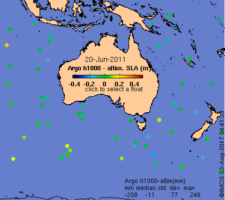 Click on an Argo float on the map above or select one by [WMO number] to see T & S profiles.