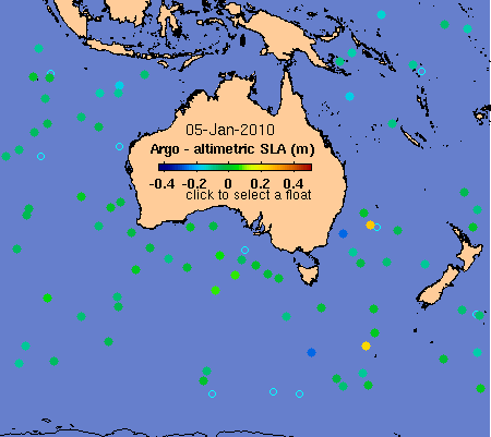 Click on an Argo float on the map above or select one by [WMO number] to see T & S profiles.